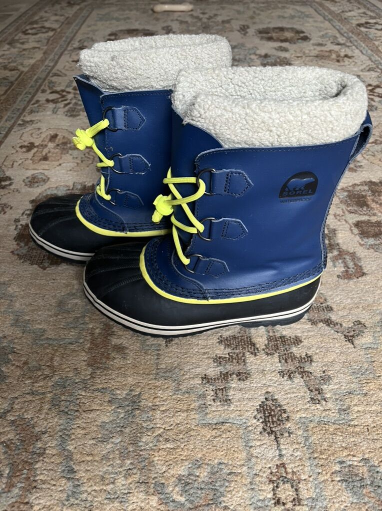 VenmoIt’s about that time!! Here is a gently used in great shape pair of boys maybe girls? ….pair of Sorel Caribou snow boots. SIZE 6