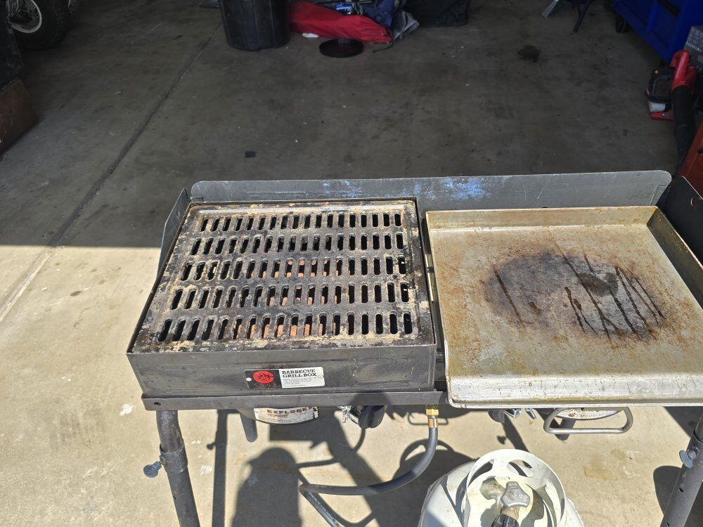 all works good has full width griddle a half griddle and a barbecue box two burners all the storage bags $200 or best offer
