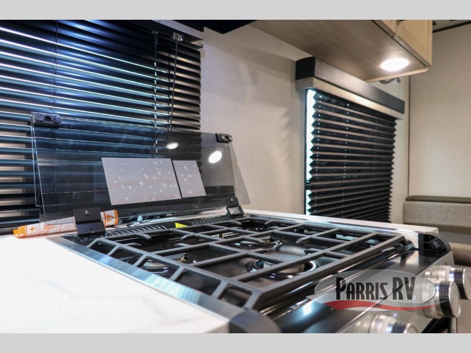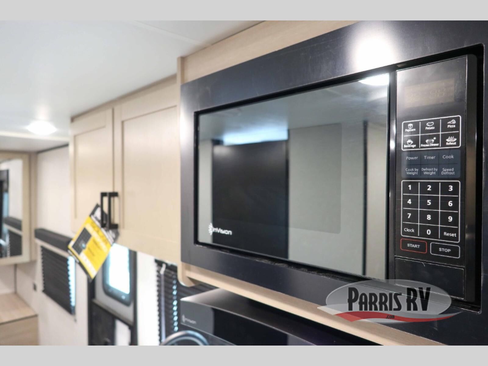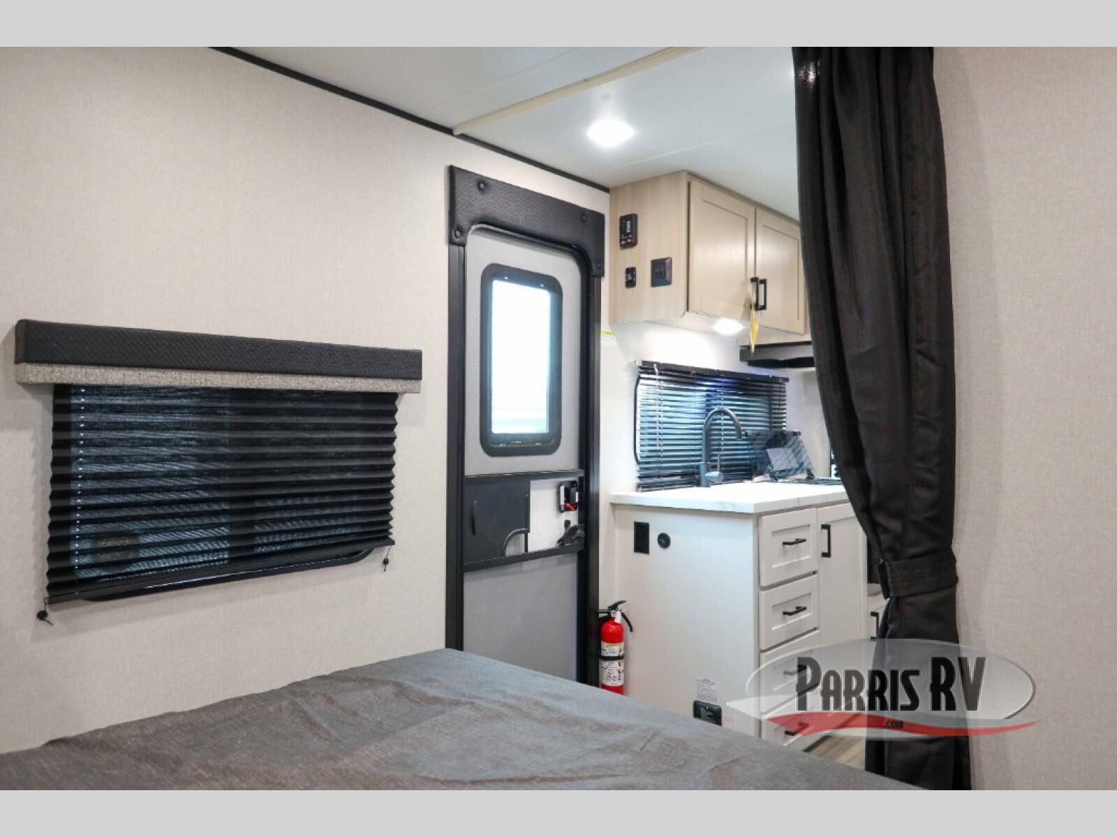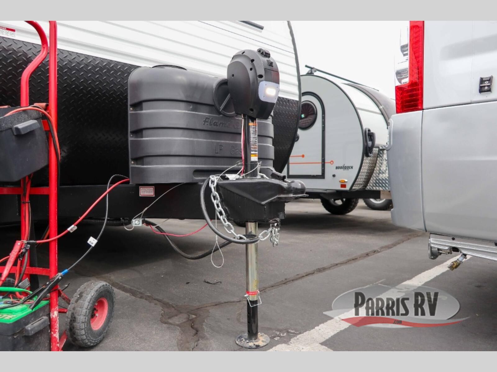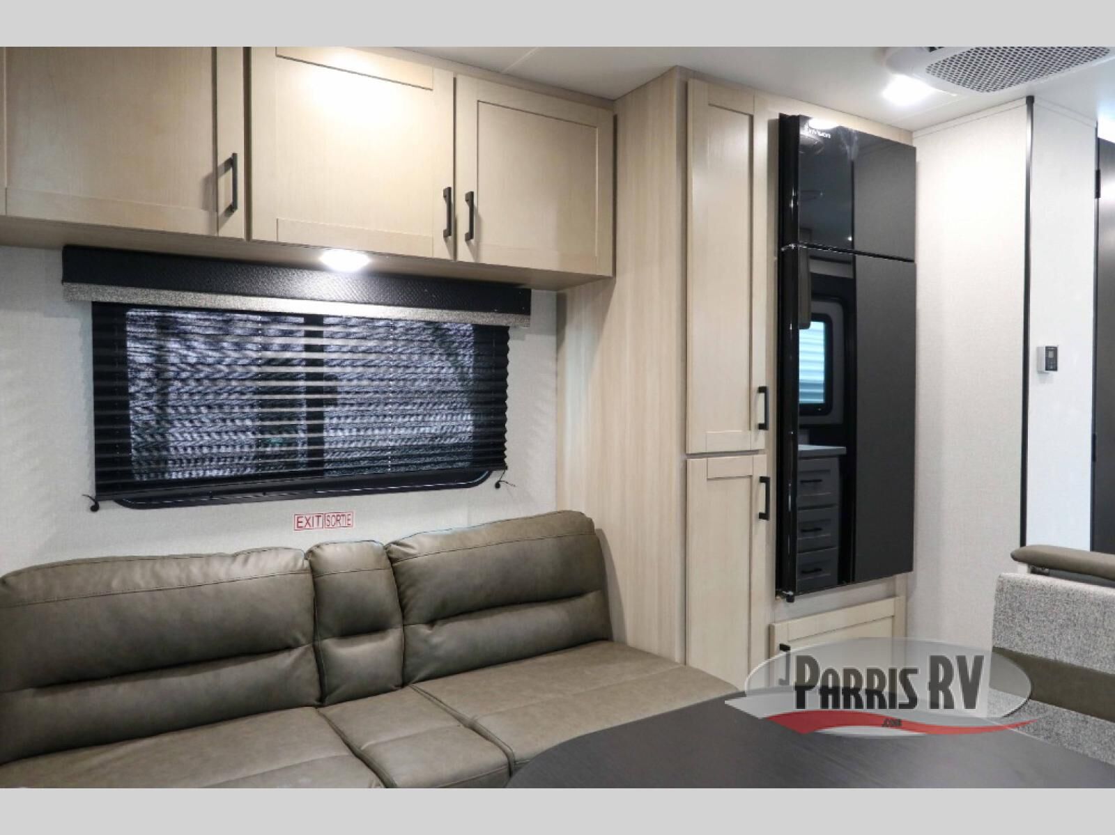 Make each camping trip count in this travel trailer that can sleep four to five each night. You'll wake up feeling refreshed on the front RV queen bed, and there are dual bedside wardrobes to keep your things organized. A middle bath includes a 40" tub/shower, which will make bath time easier if you have little ones. Once breakfast is made on the three-burner cooktop, you can dine at the booth dinette or take your plate outdoors to sit under the 16' power awning with LED lights. This unit also includes a jack-knife sofa, which can be used for sleeping space, along with the dinette!