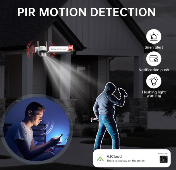 Zelle2K Ultra HD Resolution and Panoramic View: Solar camera outdoor wireless features 2K Ultra HD resolution, allowing you to capture every detail with clarity, whether it's license plate numbers or facial features. With a 355° horizontal and 90° vertical ultra-wide-angle rotation, outdoor camera wireless can comprehensively cover large areas such as courtyards, garages, and porches, leaving no safety blind spots.