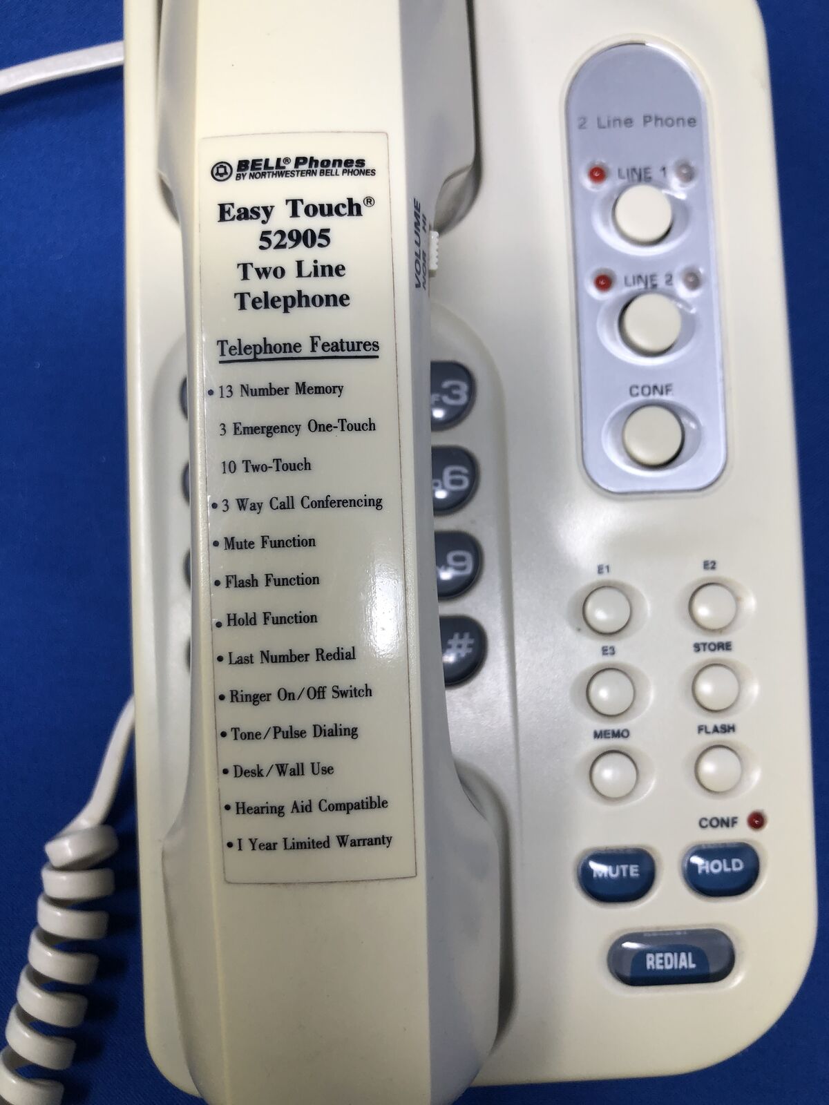 The Bell Easy Touch 52905 is a reliable two-line corded telephone, perfect for home offices or small businesses. Designed with practicality in mind, it offers simple controls and dependable performance for managing multiple lines with ease.