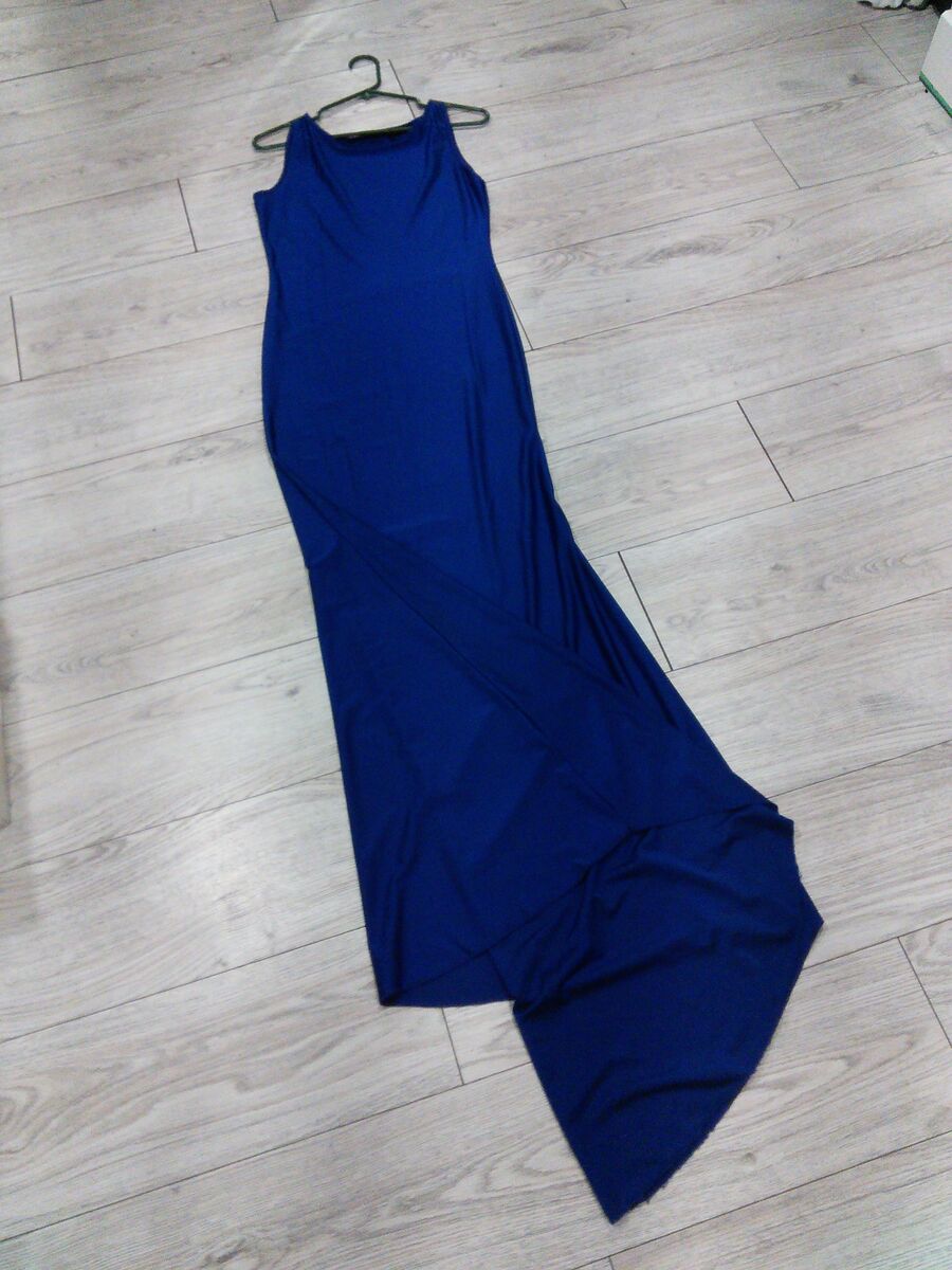 PayPalChiffon, tight fitting, dark blue, size large, extra long, sleeveless women's dress. Brand new never been worn.