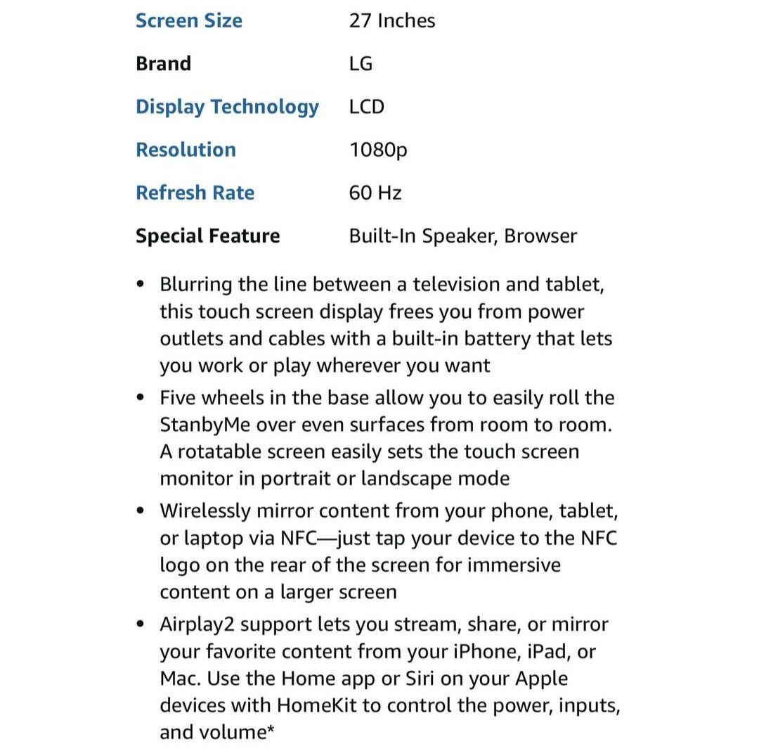 LG 27-Inch Class StanbyMe 1080p-Portable Touch-Screen-Monitor 27ART10AKPL, Built-in Battery, Full Swivel Rotation, 60Hz Refresh Rate, Calming Beige