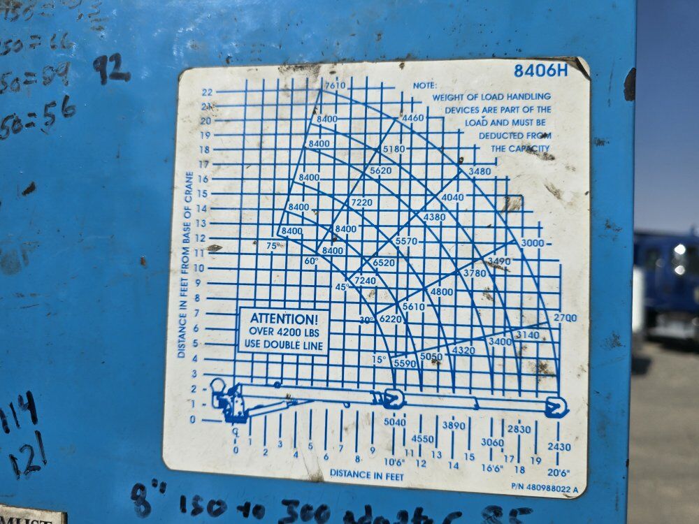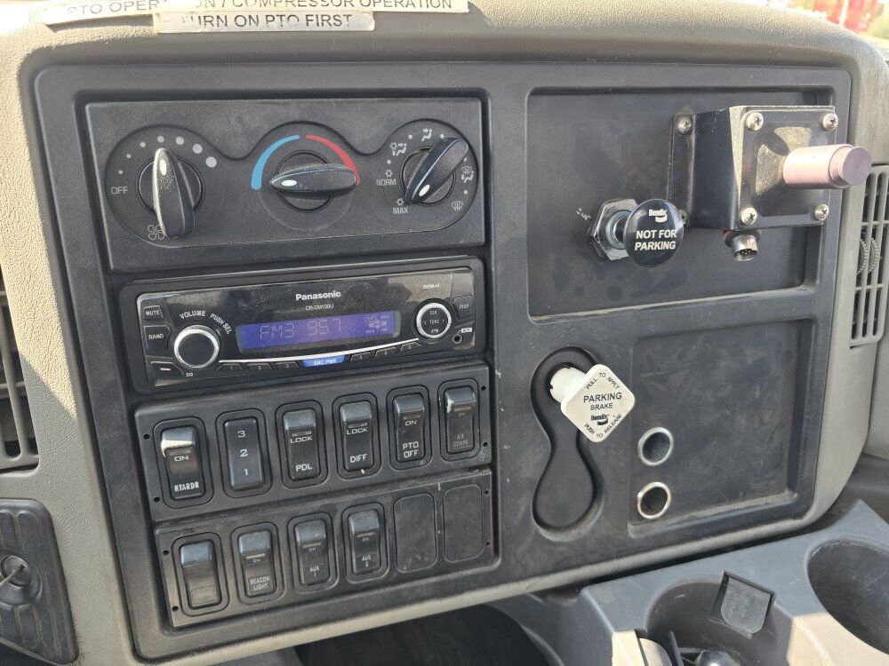2011 International 7600 service truck, 400 horsepower Maxxforce 13 diesel engine, Allison 4560 automatic transmission, 165,000 miles, 5,300 hours, 56,000GVW, differential lock, retarder, Autocrane 8,400 pound capacity 20 foot reach hydraulic crane, two hydraulic outriggers, Vanair rotary screw compressor with 1,600 hours, good tires, former municipal truck 208-734-3434
