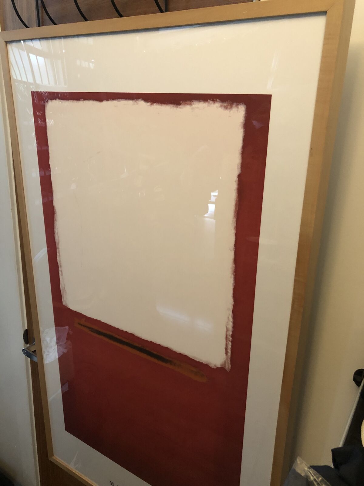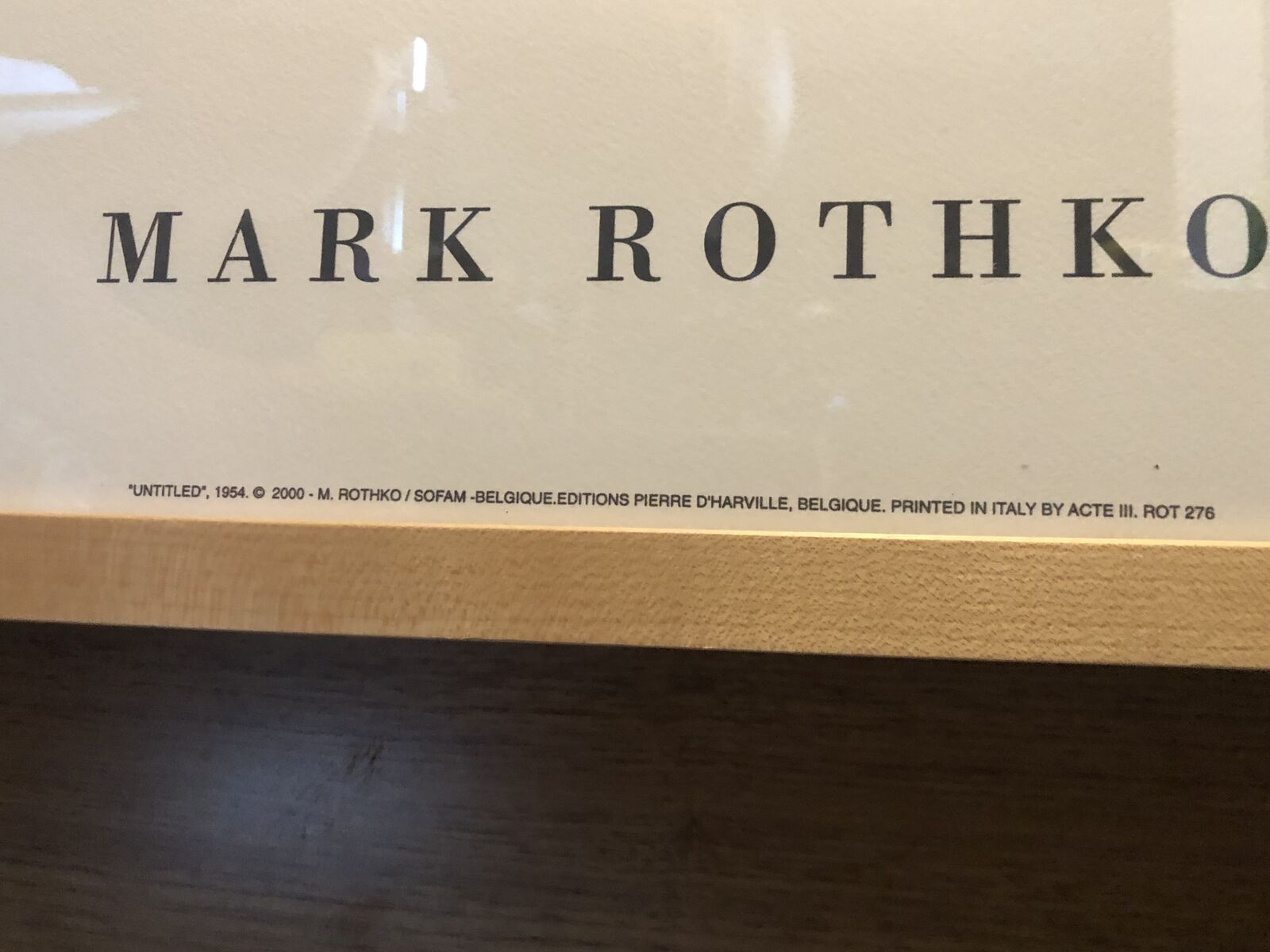 Here we have a Rothko Untitled 1954 Silkscreen Serigraph Print on Heavy Stock Paperboard. It is Copyrighted 2000 Printed in Italy by ACTE III ROT 276. Dimensions of the Wood Frame are 48 3/4”T x 29”W x 2 1/4” D. Covered with a Protective Plexiglass.