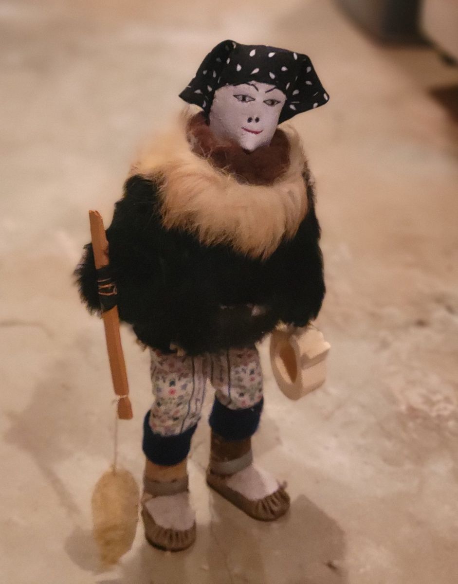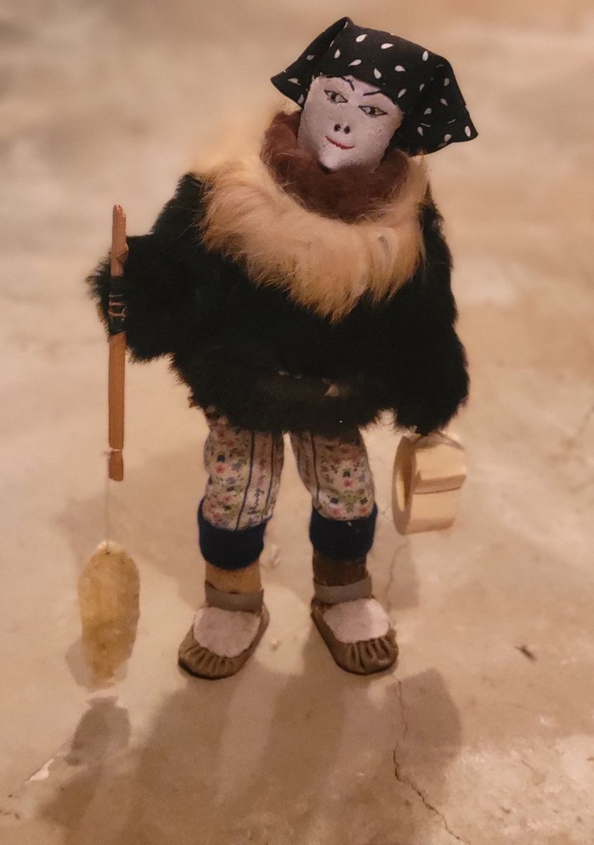 Materials it is made out of: real fur, fish skin, fabric and bone.
