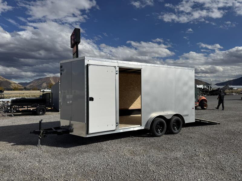 Stock #: CA2199 Trailer Specs: Color: Silver .030 Aluminum Overall: Length: 20'9" Width: 8'5" Height: 8'9" Interior/Bed: Length: 16' Box + V-Nose Width: 7'2" Height: 7' Door/Ramp: Rear Spring Assist Ramp Door (Width: 81" x Height: 80") Weight: 2,940 lbs. | GVWR: 7,000 lbs. | Payload: 4,060 lbs. Axle(s): 3,500 lb. Dexter Spring Braked Axle w/ EZ Lube Hubs Tire/Wheel: ST205/75R15 | Load Range C Coupler: Type: Bumper Pull | Size 2 5/16" | 7-Way 12V Connector 16" OC Vertical Posts | 16" OC Crossmembers | 24" OC Tube Roof Bows 3 Year Limited Warranty Standard Features: Tube Steel Chassis Fully Painted Frame 1"x1" Tube Steel Walls 1.5"x1.5" Tube Steel Roof One Piece Aluminum Roof Aluminum Capped Rear Corner Posts Tongue and Bumper Coated w/ Rugged Bedliner 24" Front Stoneguard Radius RV Man Door (36" x 78") 3/4" Paktite Flooring 3/8" Paktite Sidewalls (4) Medium Duty Tie Downs LED Interior Dome Light w/ Wall Switch Full LED Light Package w/ Encased Wiring Common Addons: Wall Mounted Spare Tire 10 ft. E-Track Stick Recessed 2,500# D-Ring Additional Colors Available Call for Availability WASATCH TRAILER SALES - LARGEST TRAILER SELECTION IN UTAH Springville: (801) 528-1581 | 1180 S 2000 W, Springville UT, 84663 View More Inventory: www.wasatchtrailer.com