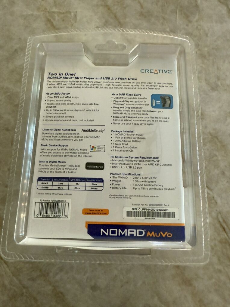 VenmoCreative Nomad MuVo MP3 Player and USB 2.0 Flash Drive New in box. Never been opened or used. 128 MB