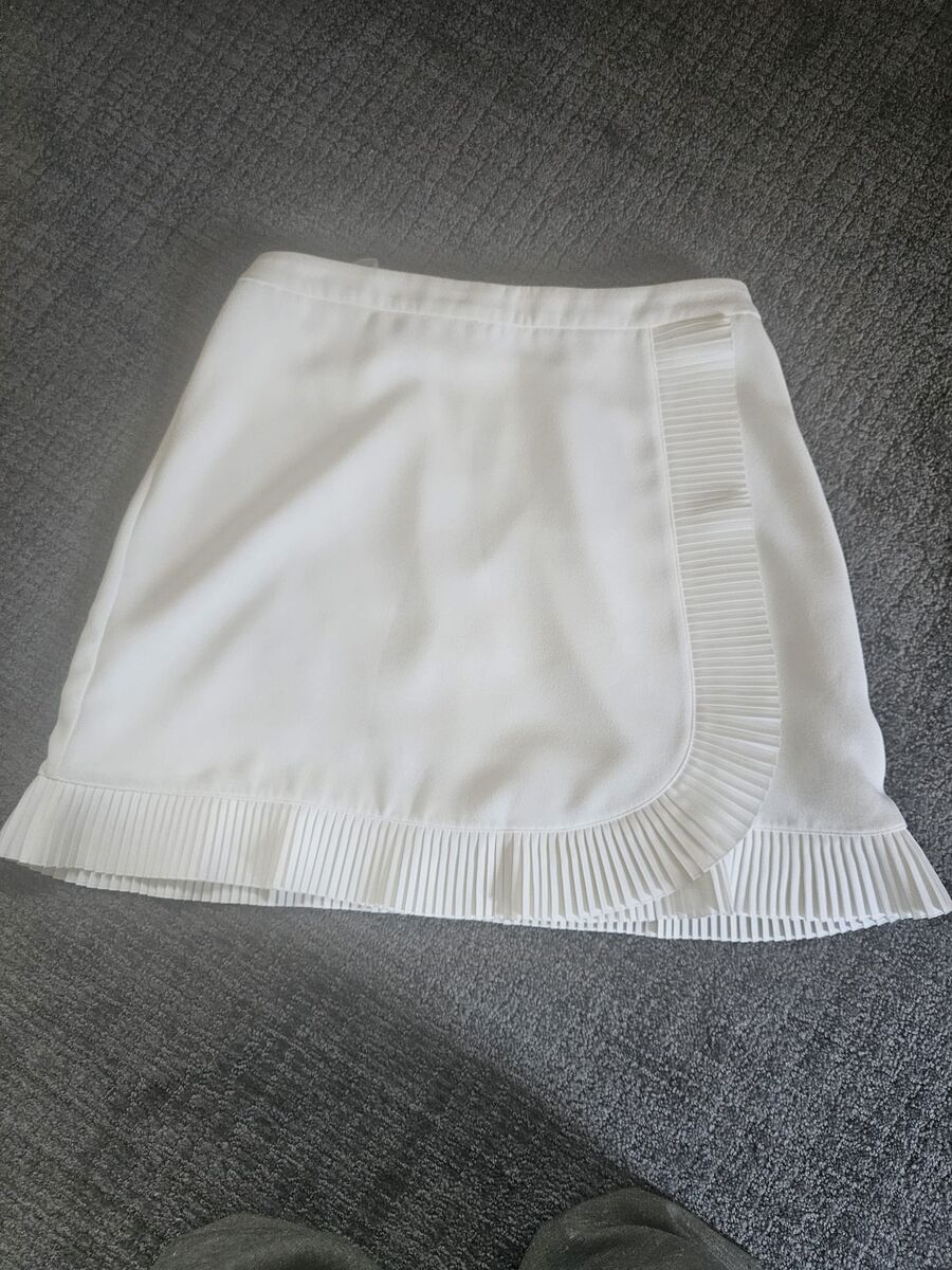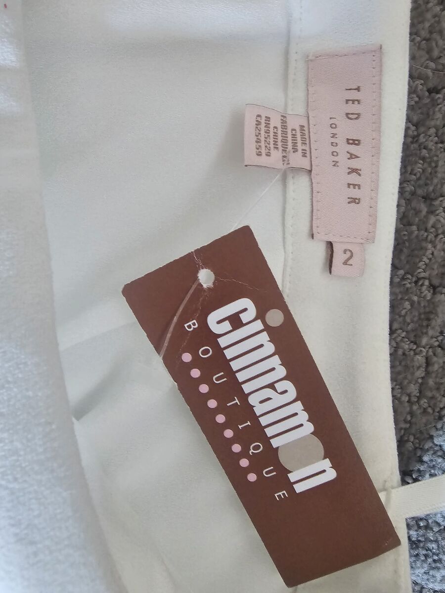 VenmoThe NWT Ted Baker Avelina Ruffle Ivory Mini skirt in size 2 is a stylish addition to any woman's wardrobe. With its ruffle accents and ivory color, this skirt exudes elegance and sophistication. The mini length adds a modern and playful touch, making it perfect for a night out or a special occasion. Made by the renowned brand Ted Baker, this skirt is sure to be a versatile and timeless piece for any fashion-forward woman.