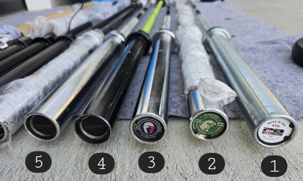 #1 more info: The PB Extreme 1500 lb. Power Bar is a zinc plated bar with bright sleeves that has both Olympic and powerlifting marks. 28.5mm thick bar has medium and center knurling and medium whip. Dual Oillite bronze bushings and snap ring ends in each sleeve. Made in the USA.