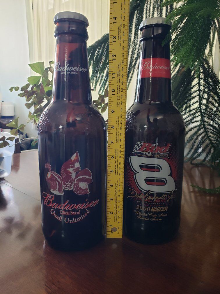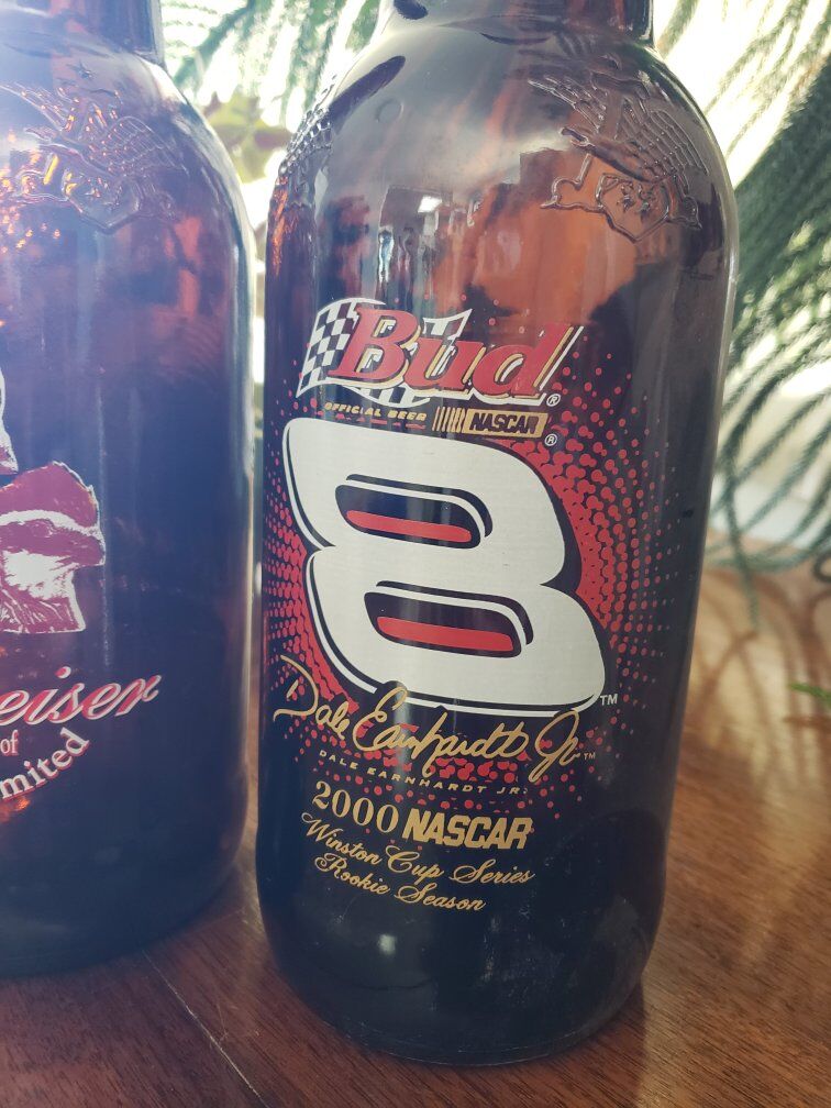 VenmoCollector's edition large brown glass budweiser bottles Dale Earnhardt Jr, Nascar 2000 Winston Cup Series Rookie Season and Official Beer of Quail Unlimited $25 each or $40 for both. Cash or Venmo