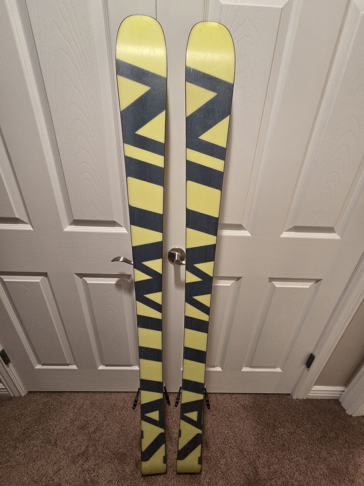Amazing twin tip all mountain Salomons, in good overall shape, light normal scratches but nothing too deep, sharp edges, high quality Marker Adjustable. Pickup in Riverton. Price is firm.