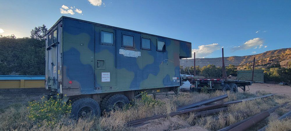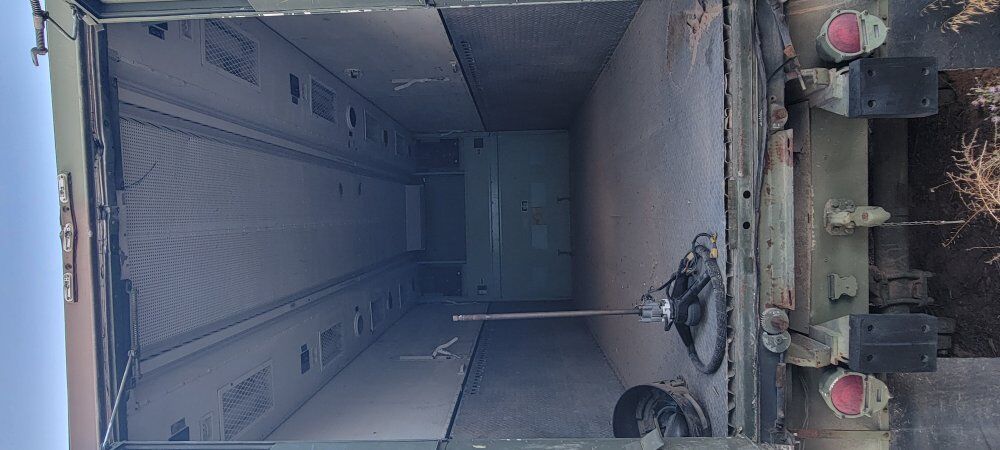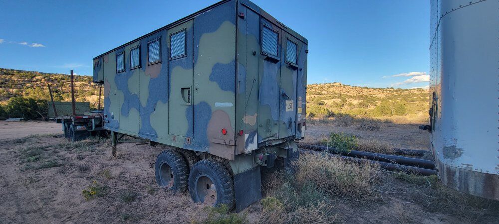 military expandable semi trailer insulated with locking doors and windows. expand to sixteen feet wide. has heaters. box is on a skid and can be removed from trailer. It also can be put back on the trailer and hauled off.