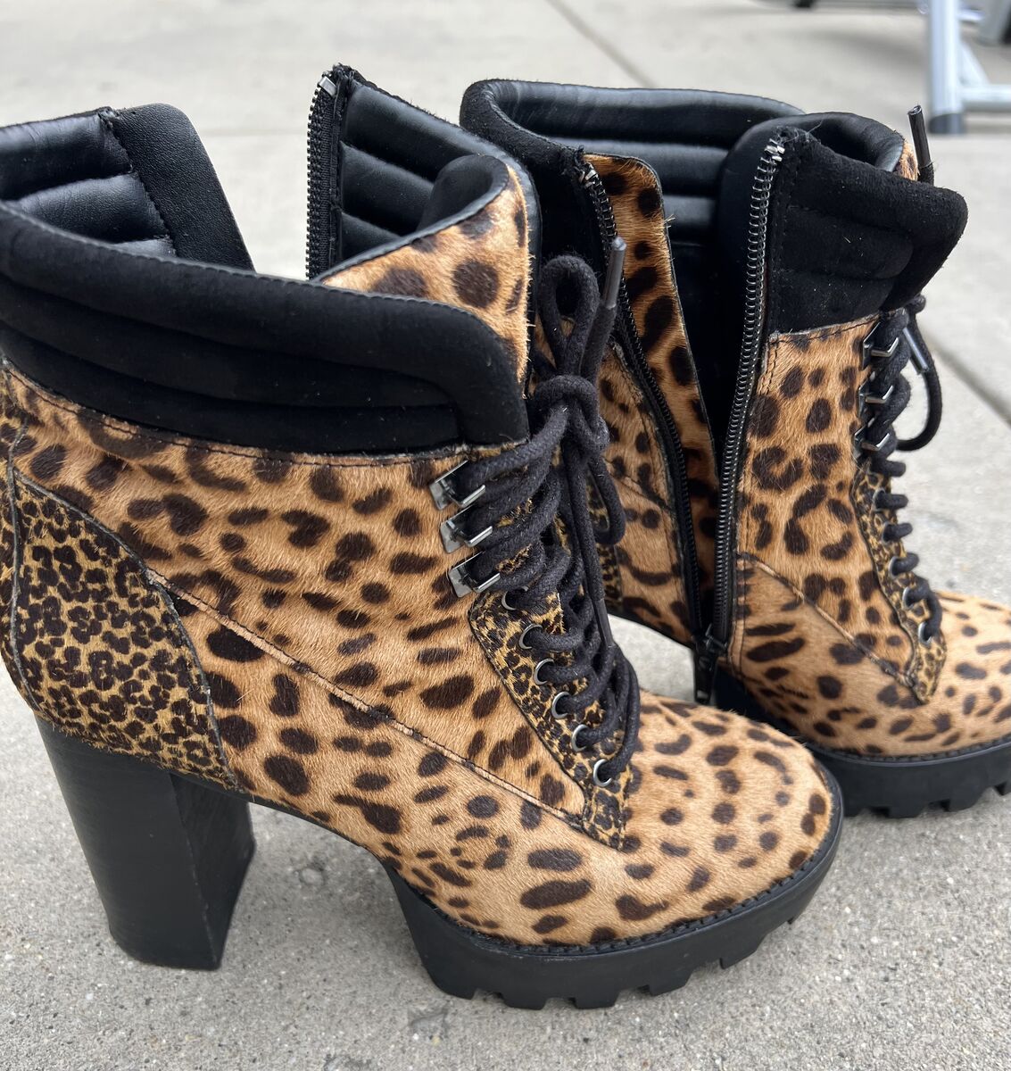 CashAppWomen’s Gianni Bini Leather 'Leopard' 4” heel platform boots/shoes.Size 6.5