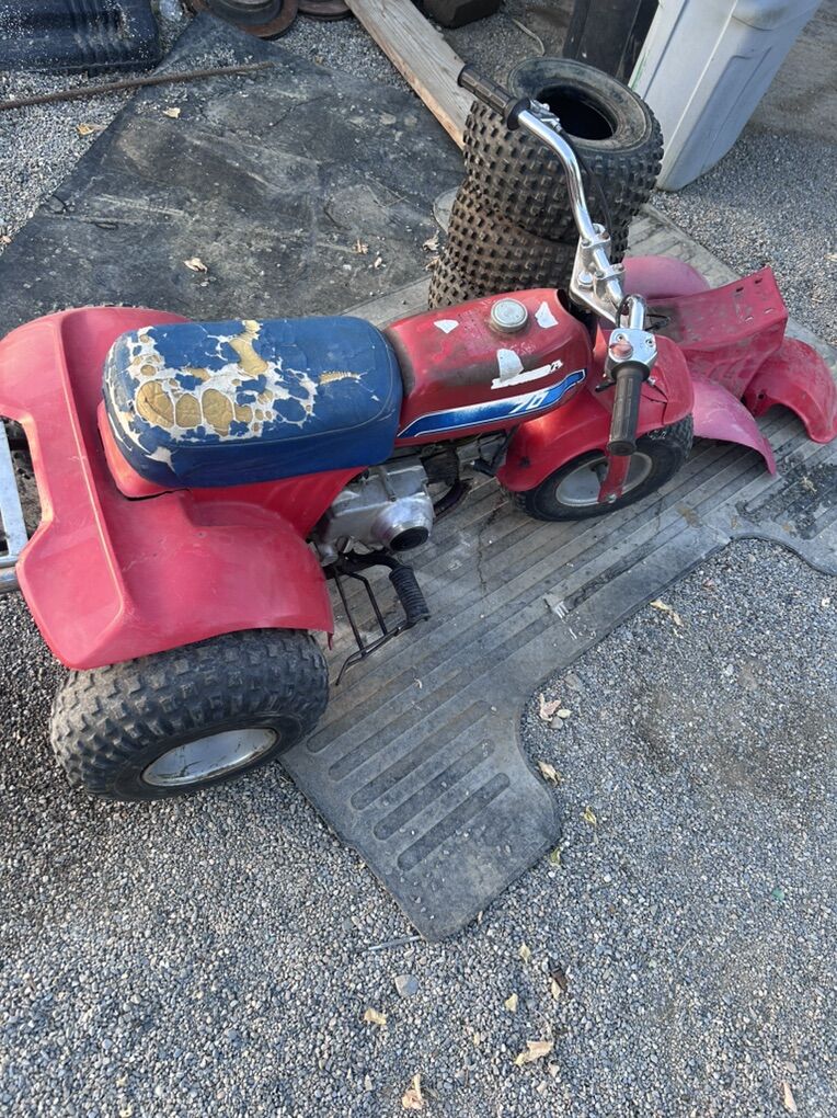85 ATC 70. All stock. Runs like a ripper. Fun little trike for adults and kids. Carb was just went through and is peppy like ‘85. New adjustable, extended throttle cable. Could use a new seat cover. Will come with extra plastics and tires for asking price. Bring cash. $1800 OBO Not interested in your $700 offers or trade for junk. Might trade for decent enclosed trailer. Can throw cash on top for right one.
