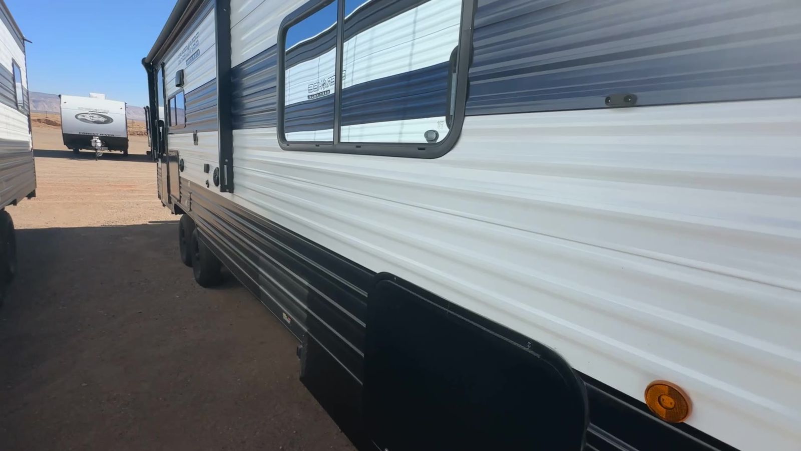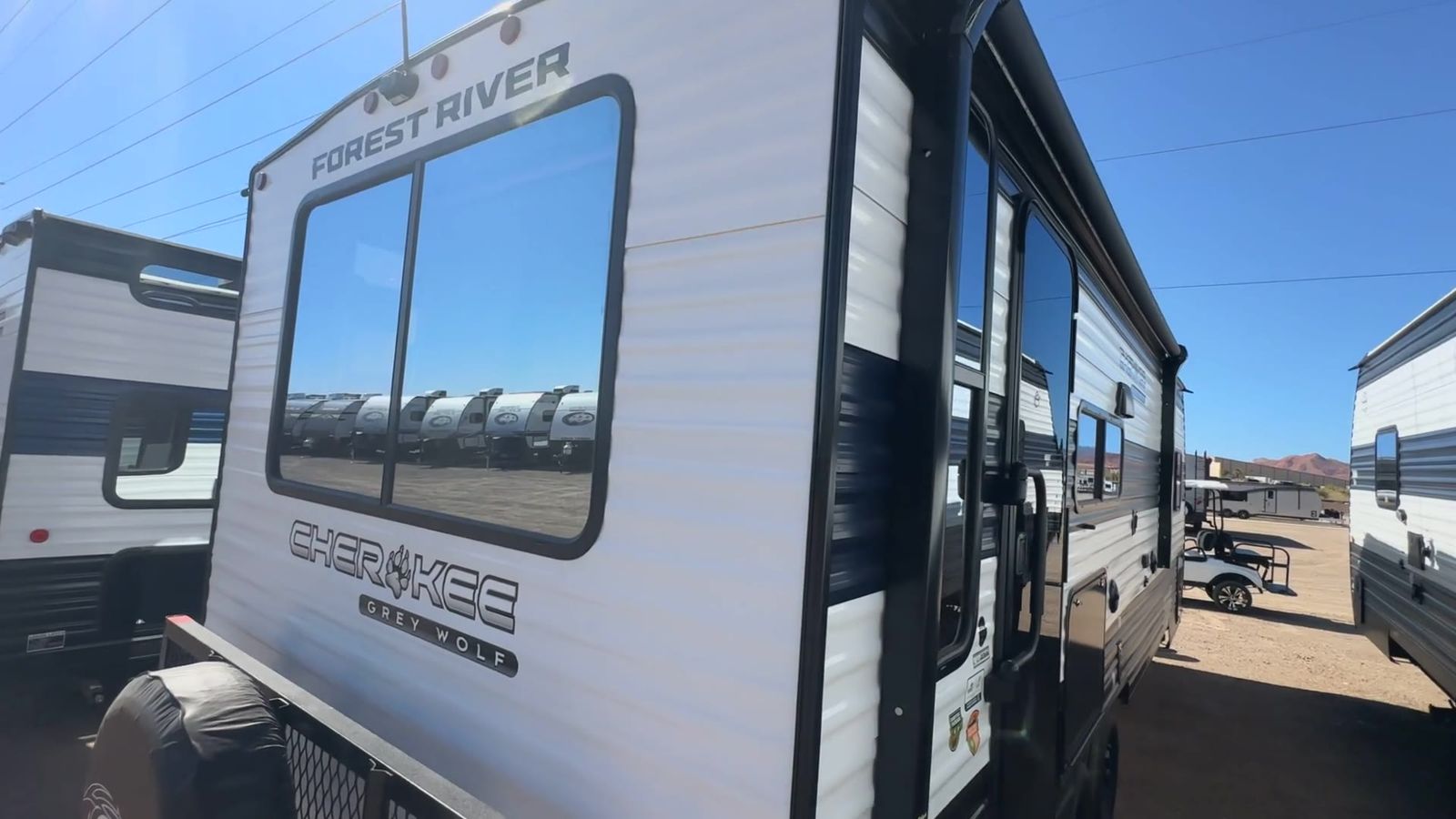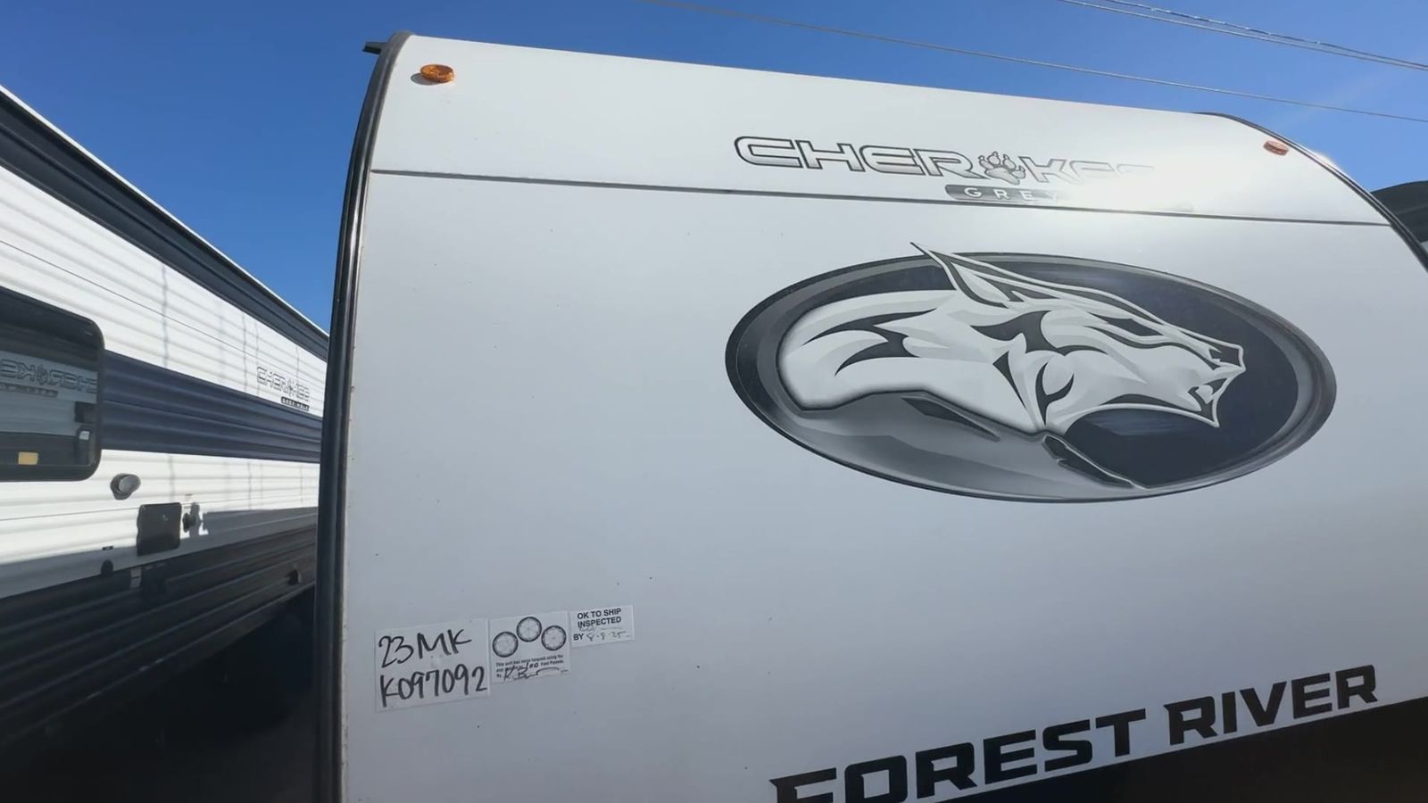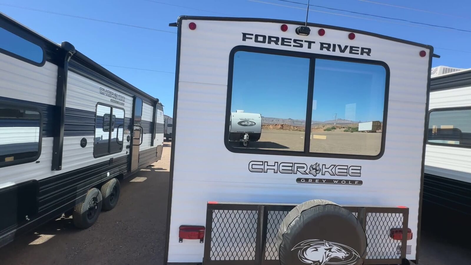 Forest River Cherokee Grey Wolf travel trailer 23MK highlights: Private Bedroom Walk-Through Bath U-Shaped Dinette Outside Storage Outdoor Kitchen This Cherokee Grey Wolf travel trailer is perfect for your small family and will leave you planning your next outing before you are back from your current weekend away! You will find all of the comforts you need with plenty of livable space including a U-shaped dinette slide. There is also a sofa for more seating when company arrives, and there are end tables on either side to prevent spills. A spacious walk-through bath leads to a front private bedroom where you will enjoy a great night's rest on a comfortable RV kingbed. You will find ample storage for clothing in the wardrobes that are above handy nightstands for your personal things. The Cherokee Grey Wolf by Forest River feature distinctive features, at-home comforts, and durable construction materials so you can enjoy your RV for years to come, plus they are outstandingly affordable! You can choose between travel trailers, toy haulers, and even fish houses, depending on the camping style you prefer. You'll find many convenient amenities both inside and outside, along with comfortable seating and sleeping spaces, and plenty of storage for your personal belongings and camp gear!