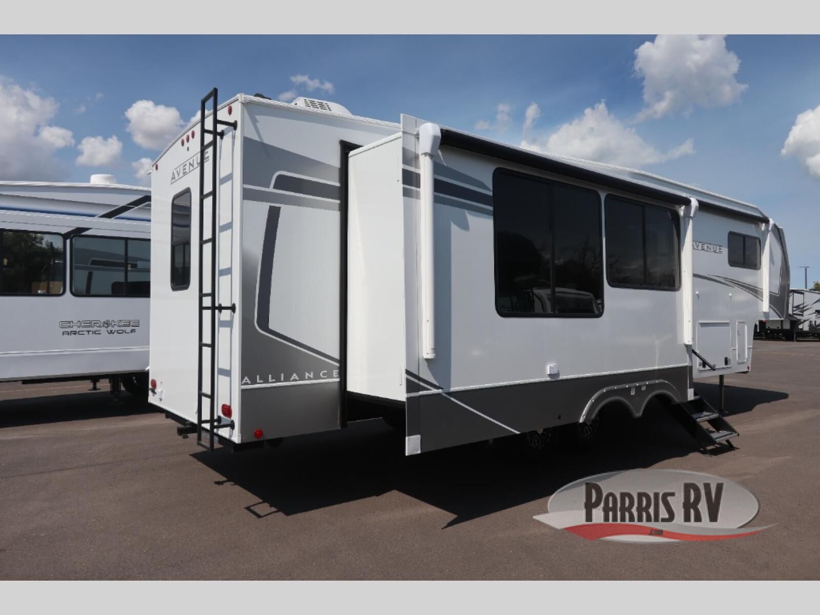 With any Avenue fifth wheel or travel trailer by Alliance RV, you will enjoy more interior space provided by the 8' 5" wide-body construction, and a long list of luxury features. Each is built with Azdel composite sidewalls both inside and out, along with a PVC roof for added strength. There are innovative storage solutions that include hidden storage behind the TV, within end tables and ottomans, and more. Since these units feature no carpet throughout, cleaning will be easier than ever, and there are flush floor slides throughout for seamless living spaces. The Avenue also comes with the OTG Solar Package with a 400 watt solar panel, inverter prep, multiple outlets, and more to keep you charged up!