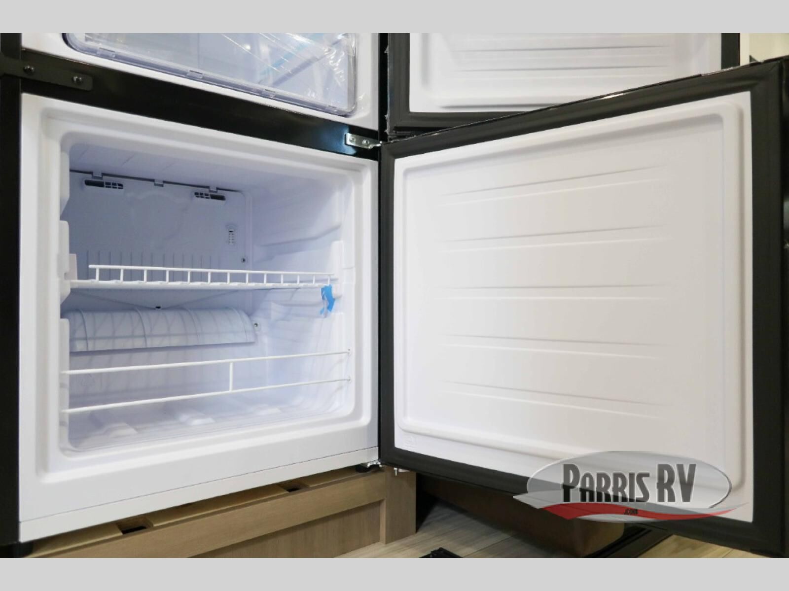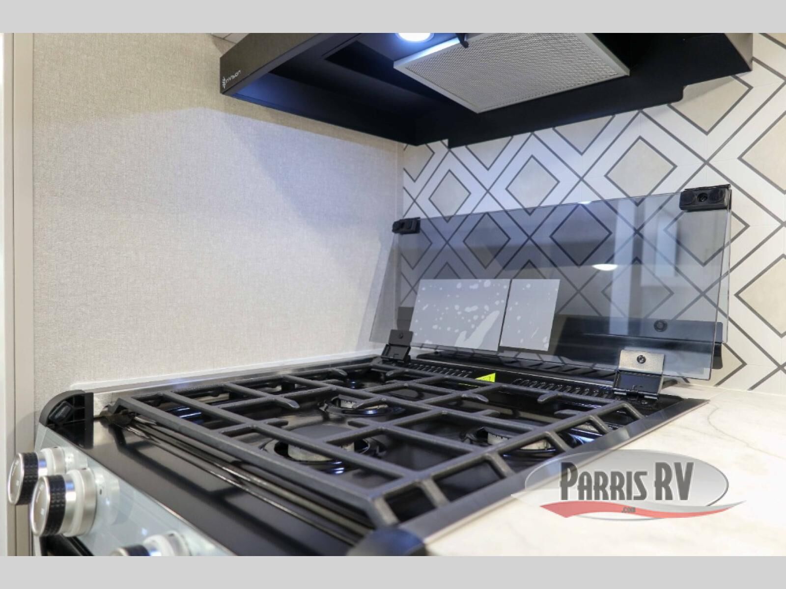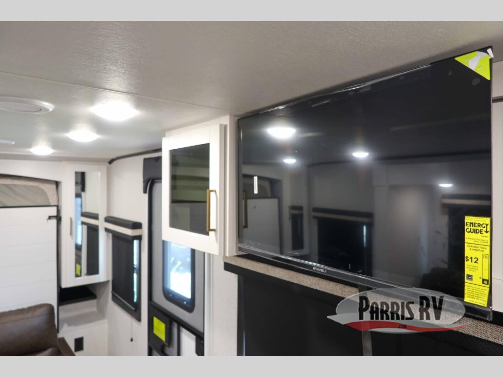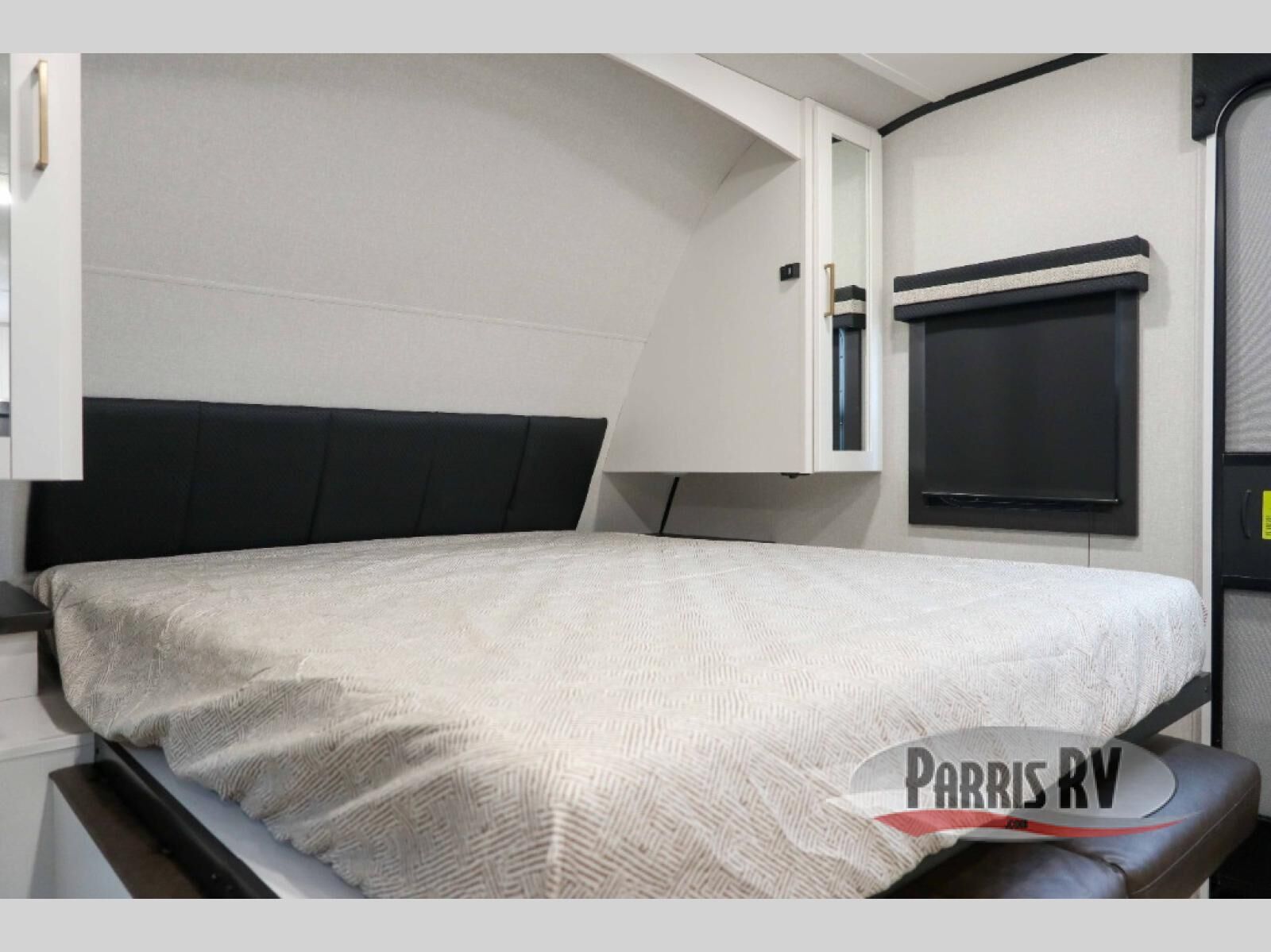 At the front of the trailer, you'll find a versatile 60" x 75" queen Murphy bed that easily converts into a 60" Jack Knife sofa, offering comfortable seating during the day and a cozy sleeping space at night. The slide-out expands the living area with a 60" theater seat, perfect for relaxing, while also housing a fully equipped kitchen with a three-burner range and an 11 cu. ft. refrigerator, making meal prep easy and convenient. Across from the slide, a spacious 38" x 68" dinette provides additional seating for meals, games, or gathering, situated right next to a pantry for storing all your dry goods. In the rear corner, the bathroom includes a roomy 40" shower, a foot-flush toilet, and a linen closet to keep towels and essentials neatly organized and within reach.