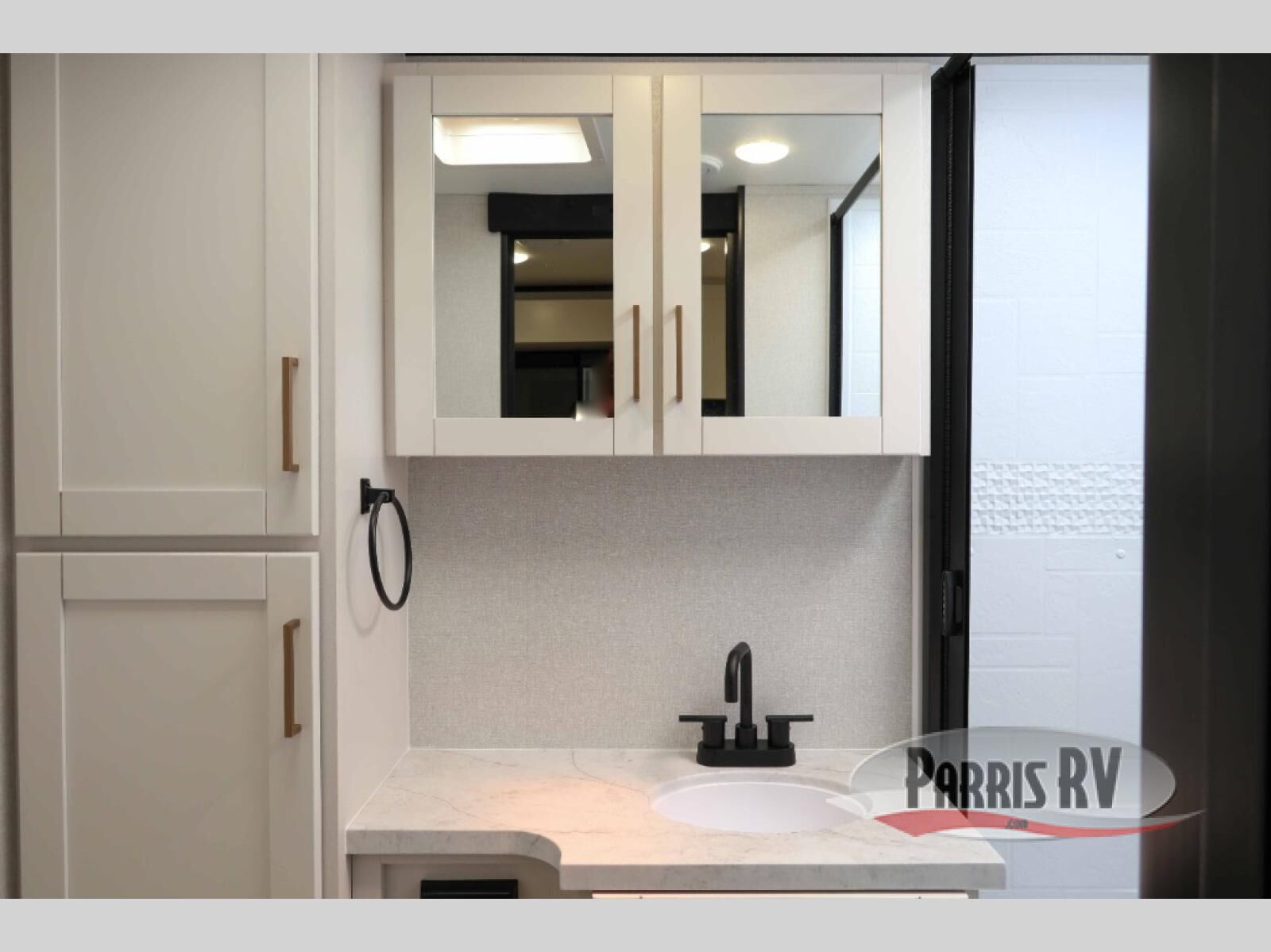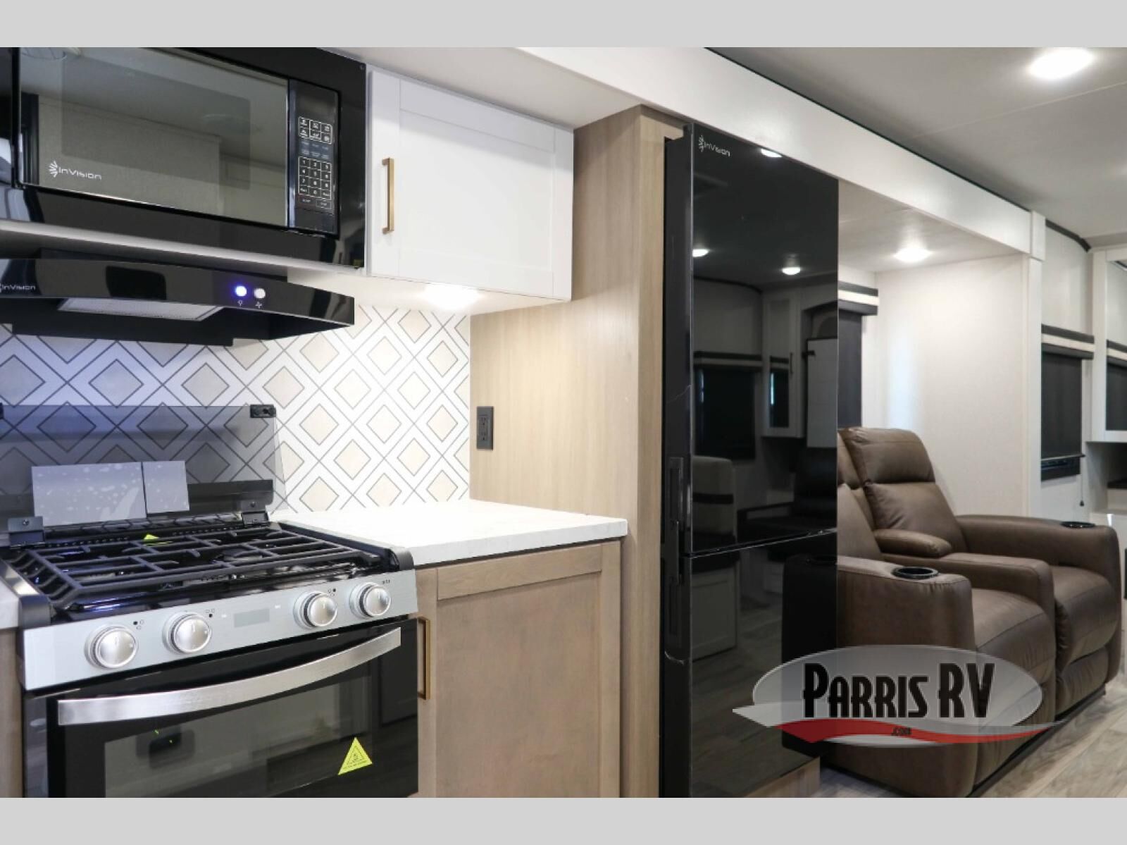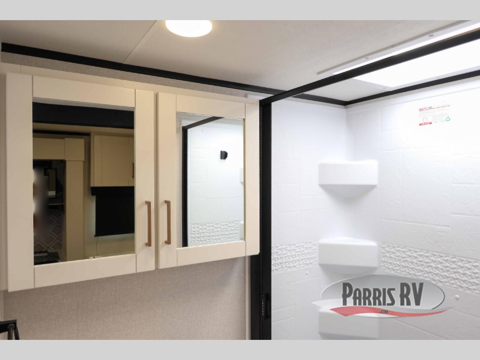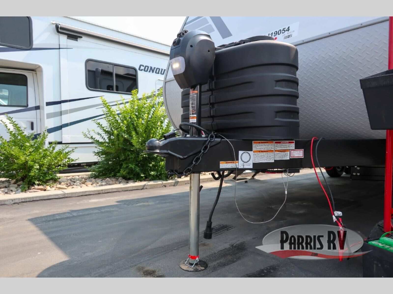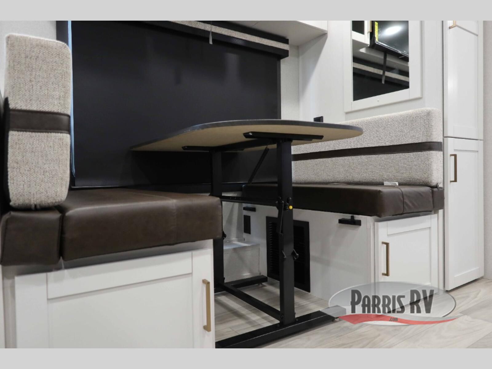 At the front of the trailer, you'll find a versatile 60" x 75" queen Murphy bed that easily converts into a 60" Jack Knife sofa, offering comfortable seating during the day and a cozy sleeping space at night. The slide-out expands the living area with a 60" theater seat, perfect for relaxing, while also housing a fully equipped kitchen with a three-burner range and an 11 cu. ft. refrigerator, making meal prep easy and convenient. Across from the slide, a spacious 38" x 68" dinette provides additional seating for meals, games, or gathering, situated right next to a pantry for storing all your dry goods. In the rear corner, the bathroom includes a roomy 40" shower, a foot-flush toilet, and a linen closet to keep towels and essentials neatly organized and within reach.