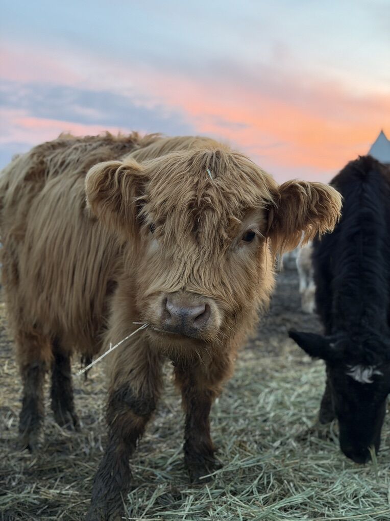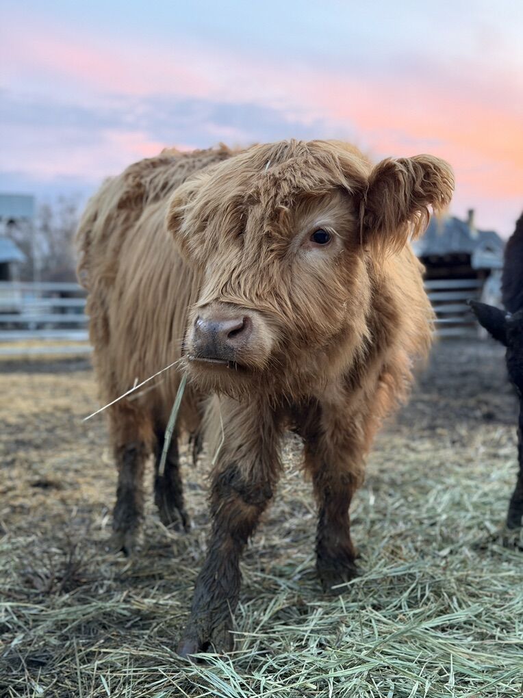 Full-bred Scottish Highland steer calf. Very calm, easy-going temperament and extremely fluffy.