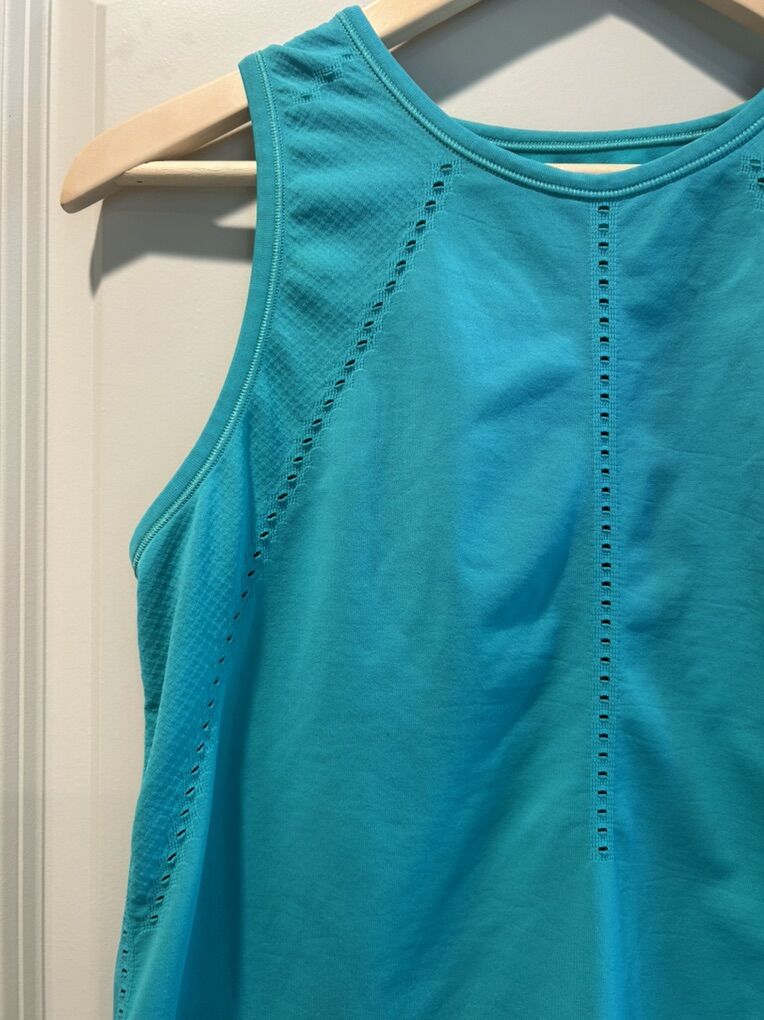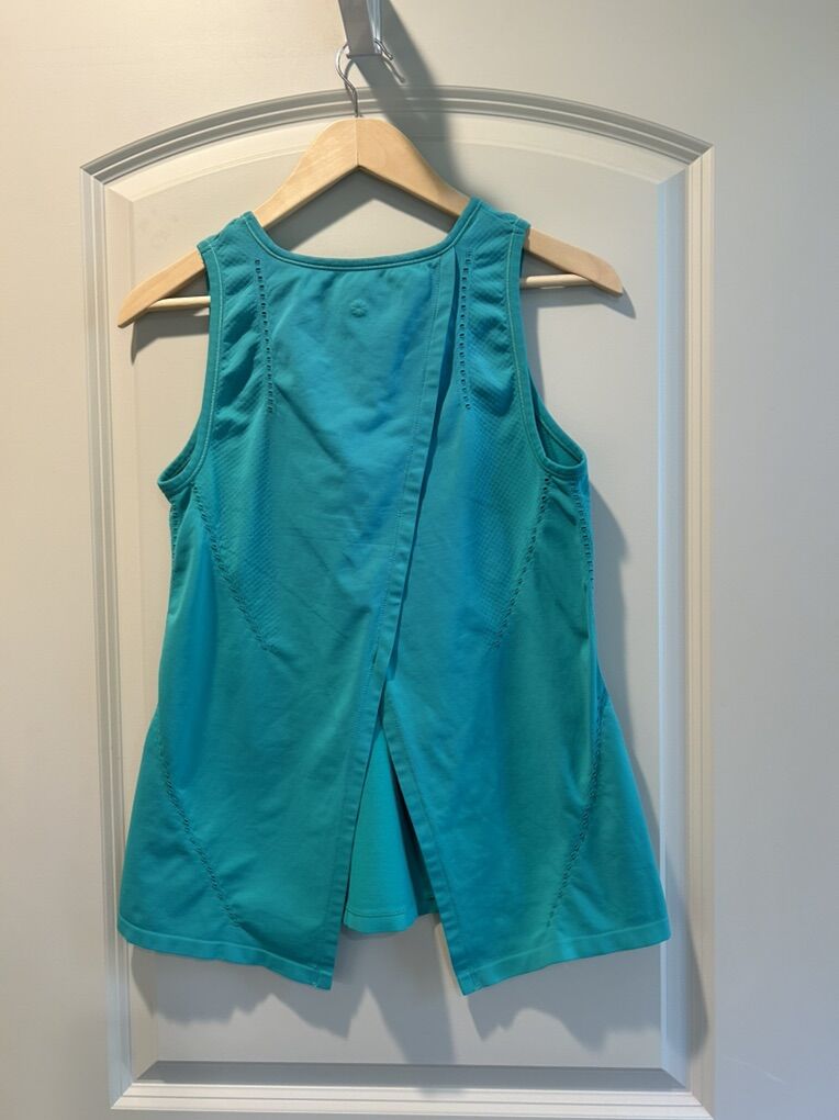 VenmoIn excellent condition, Athleta green tank top. Smooth buttery, stretchy fabric with small cut outs. Split V hem in the back accentuates your rear end. Beautiful green color. Thicker shoulder straps conceal bra lines. Flowy loose fit around the middle abdomen area. Clean smoke free home. Cash or Venmo. Pick up from Alpine.