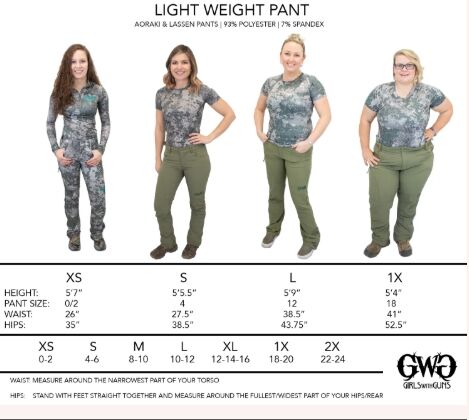 Specs Fabric Polyester Features Breathable, Waterproof Fit Type Relaxed Gender Women’s Hunting Type Big Game Insulated No Recommended Use Wet Weather, Casual, Hiking, Hunting Weather Rating Uninsulated Brand Girls With Guns