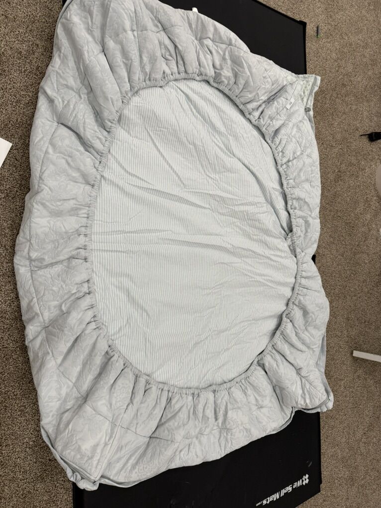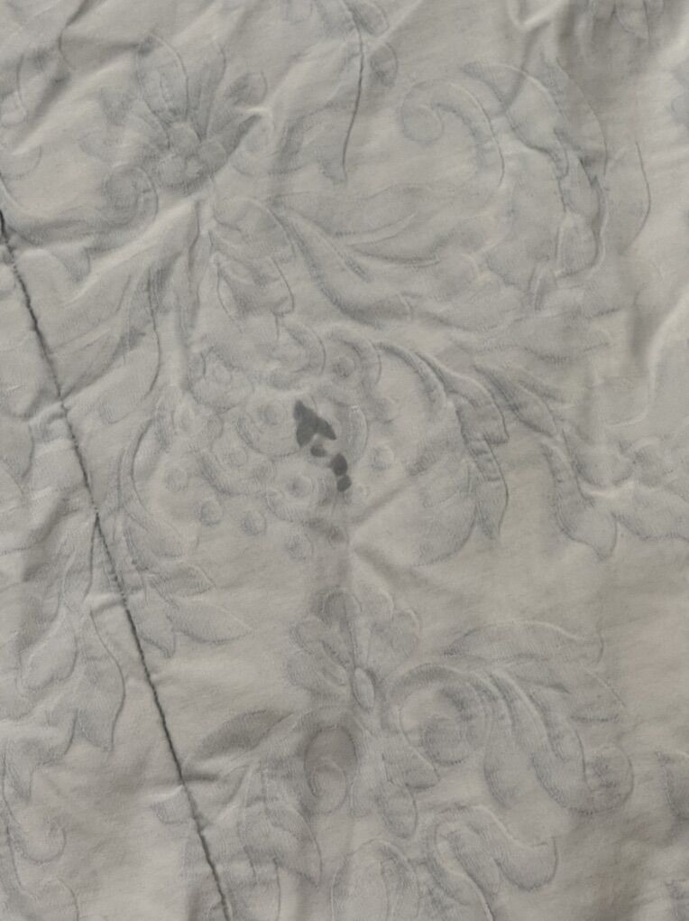 Has 2 shams and 2 cases, shams are slight off color. Small dark spot on top. Gently used item number sep24. $359 new