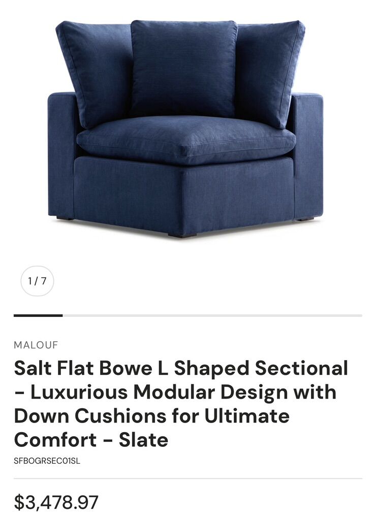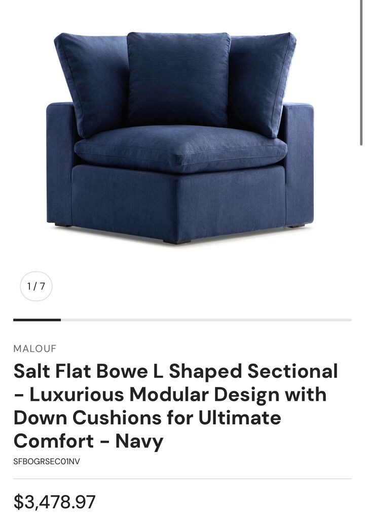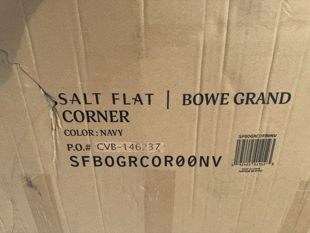 Salt Flat Bowe Corner & Armless chair I have two boxes one box has the armless chair in it and the other one has the corner piece Luxurious Modular Design with Down Cushions for Ultimate Comfort - Navy New in the box Located in magna