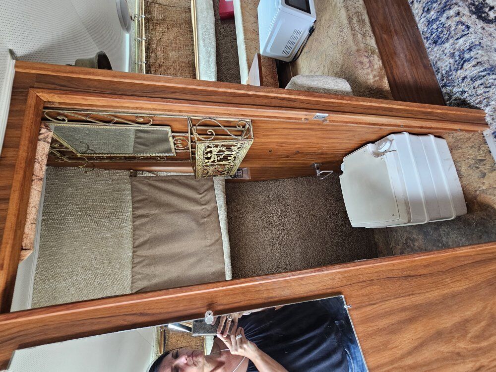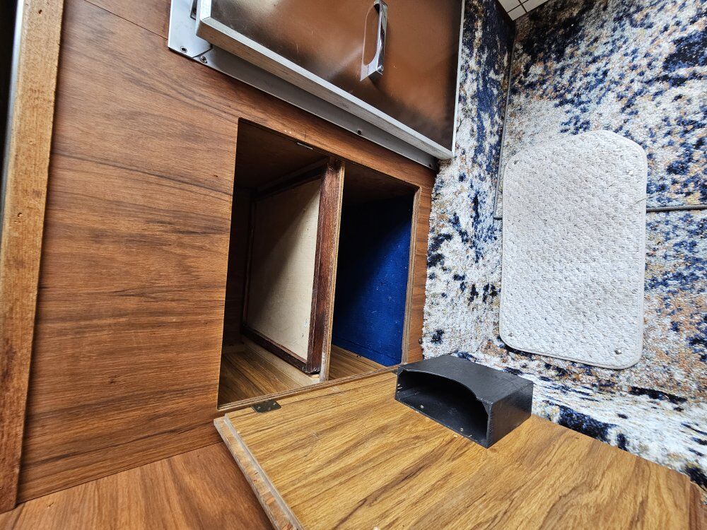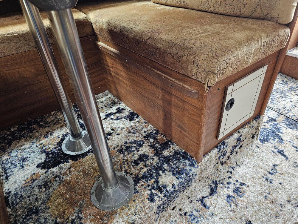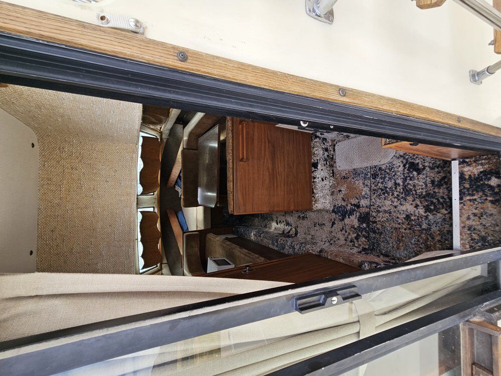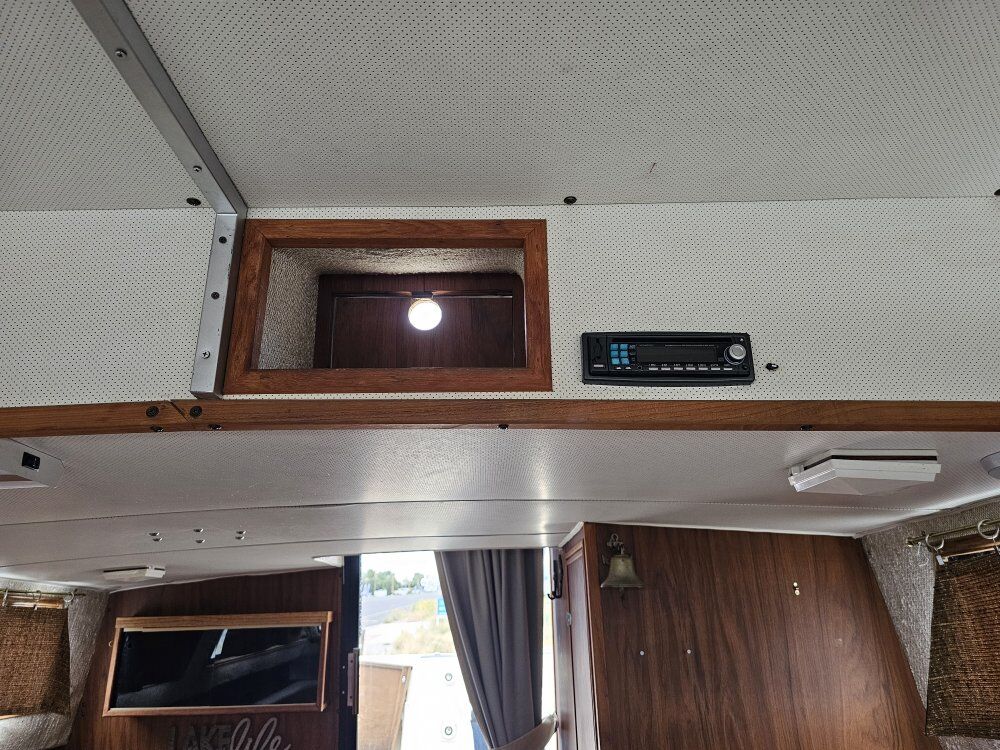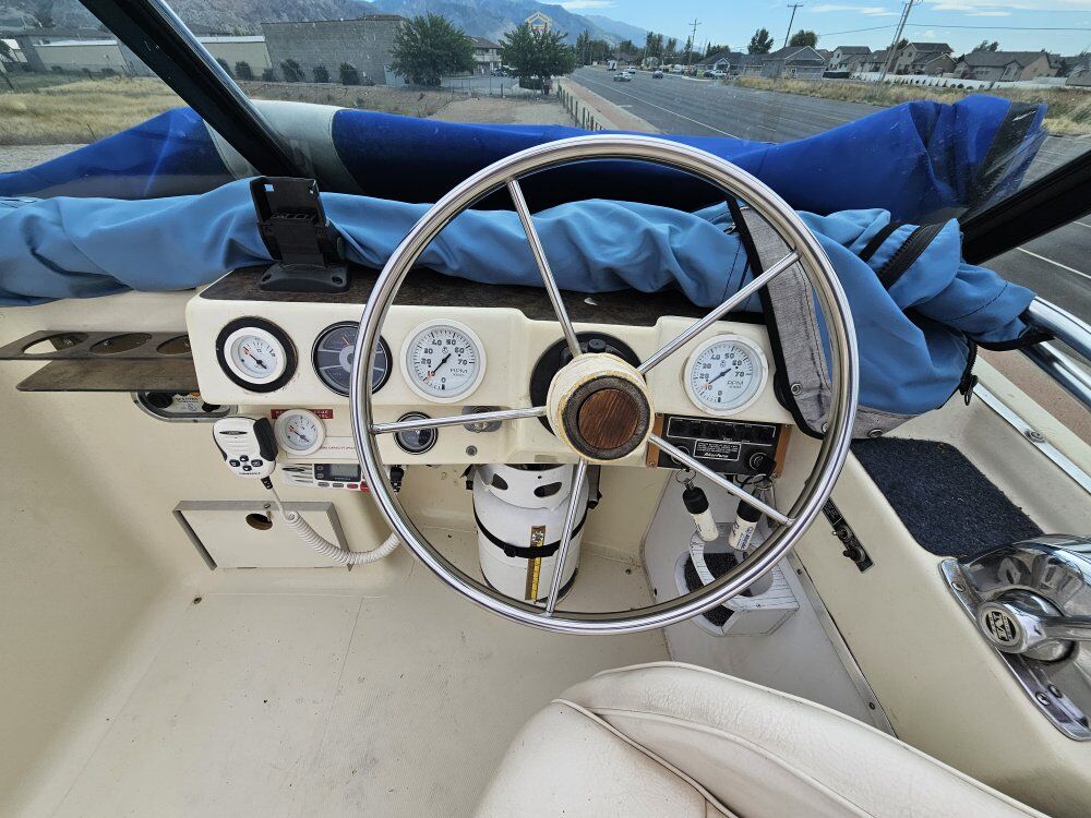 BATHROOM WITH PORTA POTTY, DRESSER AND CLOTHES RACK ICE BOX 3 BURNER STOVE (PROPANE TANK ON BRIDGE) STAINLESS STEEL SINK CD PLAYER / RADIO / SPEAKERS LOTS OF STORAGE!!!!!! HAS BIMINI TOP WITH FULL ENCLOSURE WINDOWS