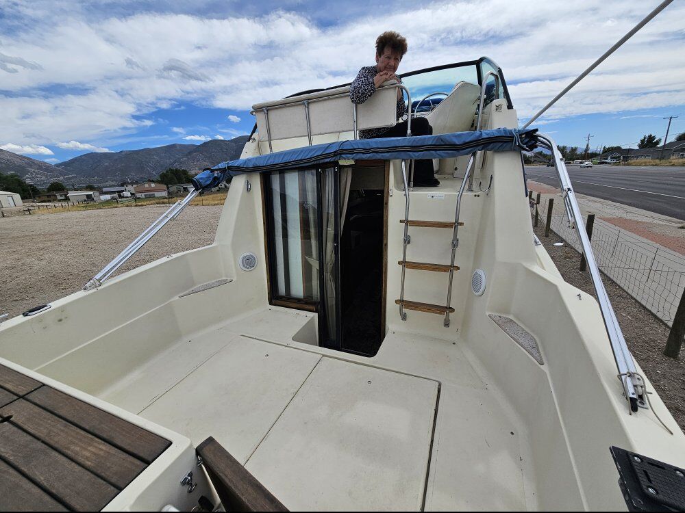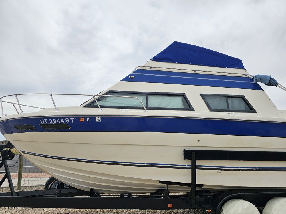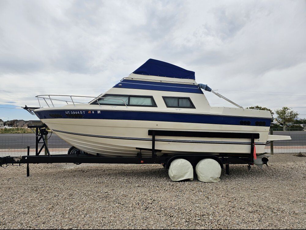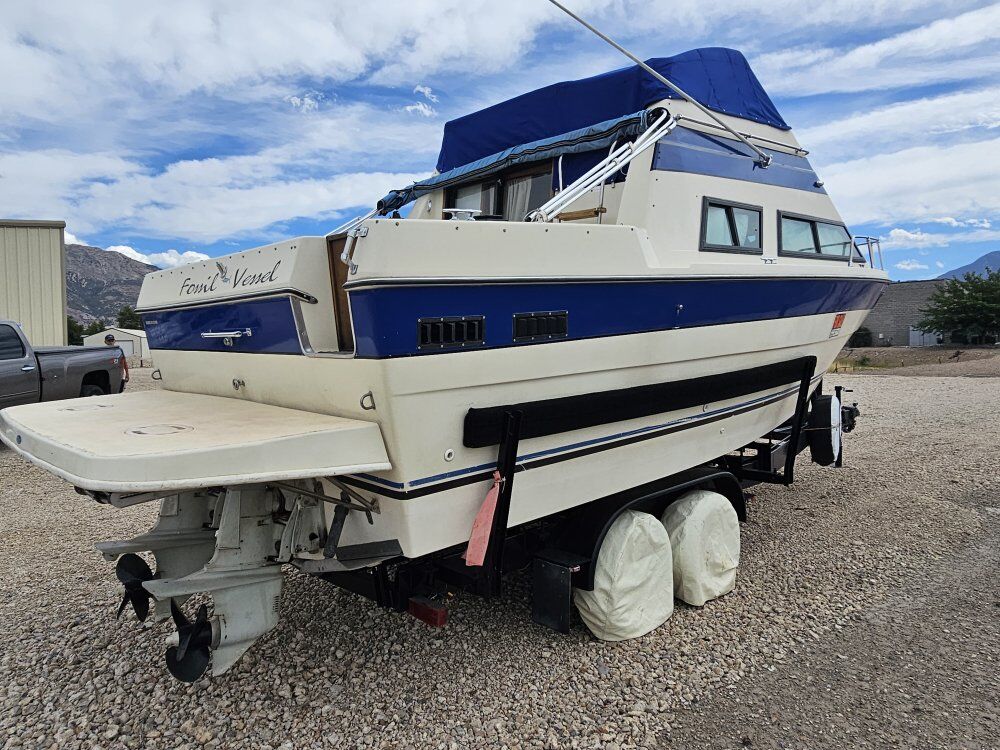 IN EXCELLENT CONDITION FOR ITS AGE!!! 1979 26 FT LONG 9.6 FT BEAM TWIN VOLVO PENTA 350 ENGINES (255 HP EACH) VOLVO 280 OUT DRIVES (NEW U-JOINTS AND BELLOWS) 2 SETS OF SPARE PROPS 65 GALLON GAS TANK 10 GALLON WATER TANK 2 BATTERIES EXTENDED SWIM PLATFORM FROM SWIMPLATFORMS.COM 3 FT EXTENDABLE SWIM LADDER DOWN RIGGER BRIDGE – MARINE RADIO AND ANTENNA HUMMINGBIRD DEPTH / FISH FINDER WITH GPS CABIN –