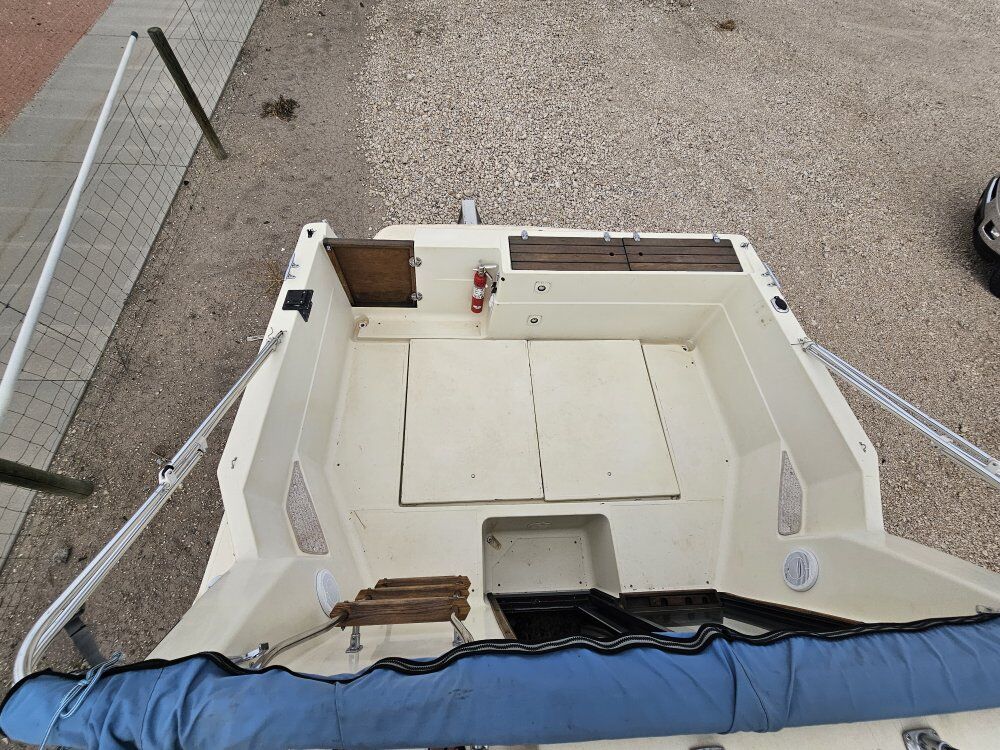 SEPARATE BIMINI FOR THE BRIDGE THAT YOU CAN STAND UP UNDER NEW STORAGE COVER REMOVABLE CARPET OUTSIDE AND INSIDE TRAILER –