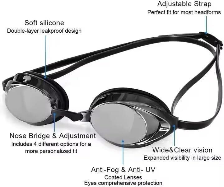GOGGLES Watertight Seal: These swimming goggles feature a soft, flexible silicone gasket that forms a watertight seal around the eyes.