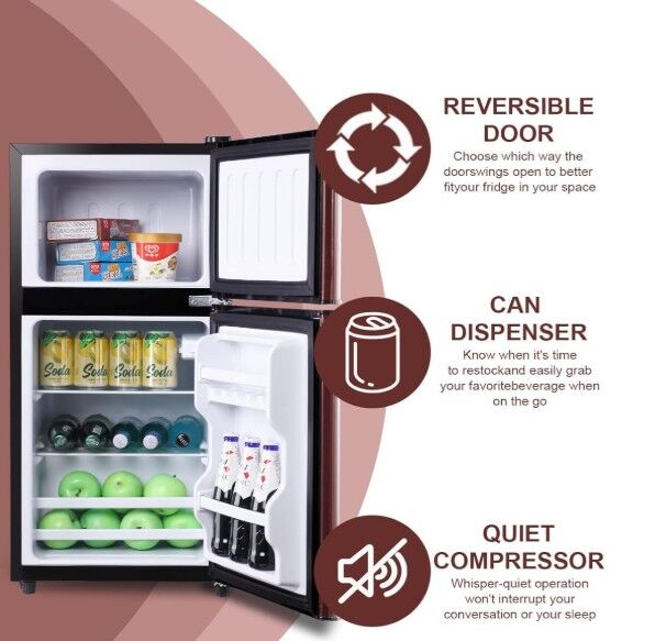 KRIB BLING Mini Fridge With Freezer,Compact Refrigerator With 2 Doors,7- Level Adjustable Thermostat, Removable Glass Shelves For Bedroom, Office, Kitchen, Dorm room, RV etc.