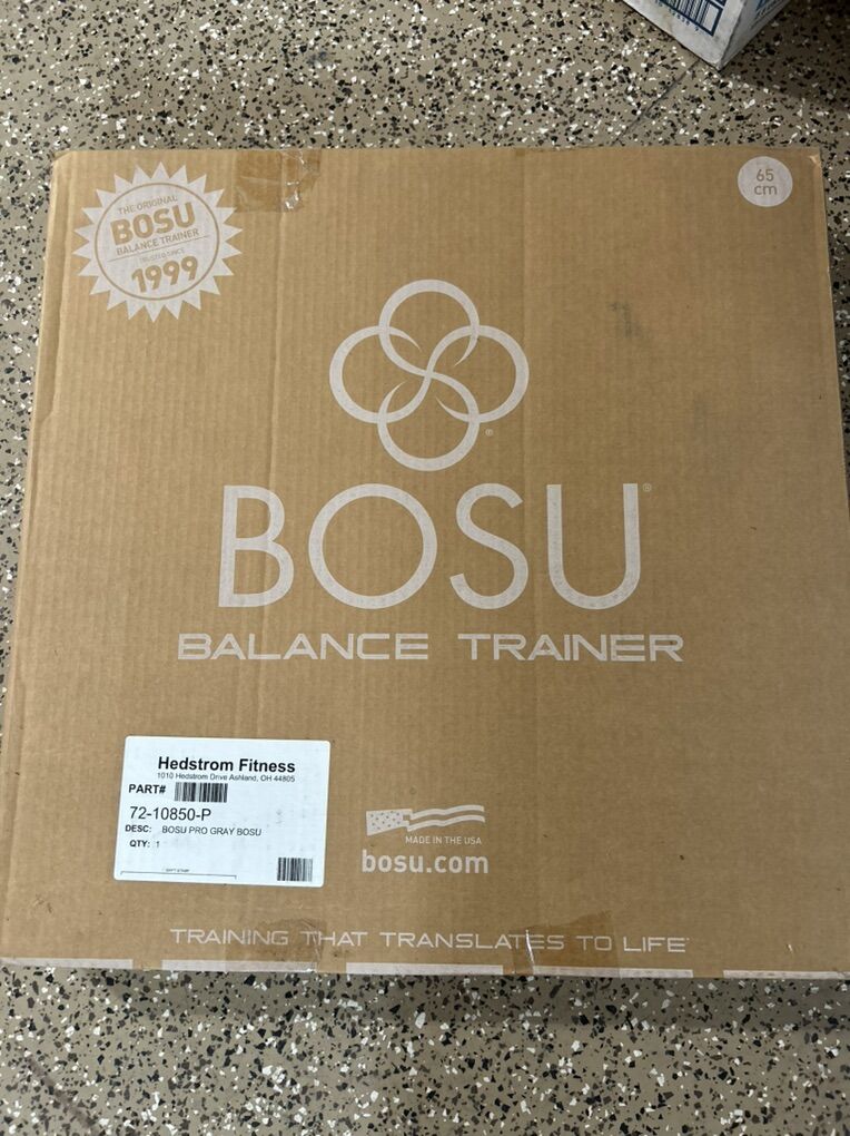 VenmoNew in box. Sold on website for 189.99 Description from website…. The BOSU® Pro Balance Trainer is a best seller - currently used in fitness, sports conditioning and rehabilitation facilities. It is known industry-wide for balance, strength and flexibility training, as well as delivering a killer cardio workout that’s fun. The PRO Balance Trainer challenges the entire body with integrated, multi-joint movements requiring muscle groups to simultaneously work together. The PRO Balance Trainer is designed for commercial use, great for personal trainers, physical therapists, and fitness instructors. It is designed with a patented non-slip, dually over-molded base meant to withstand continual daily gym usage.