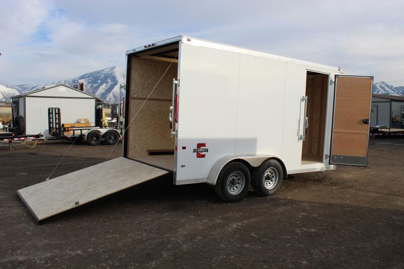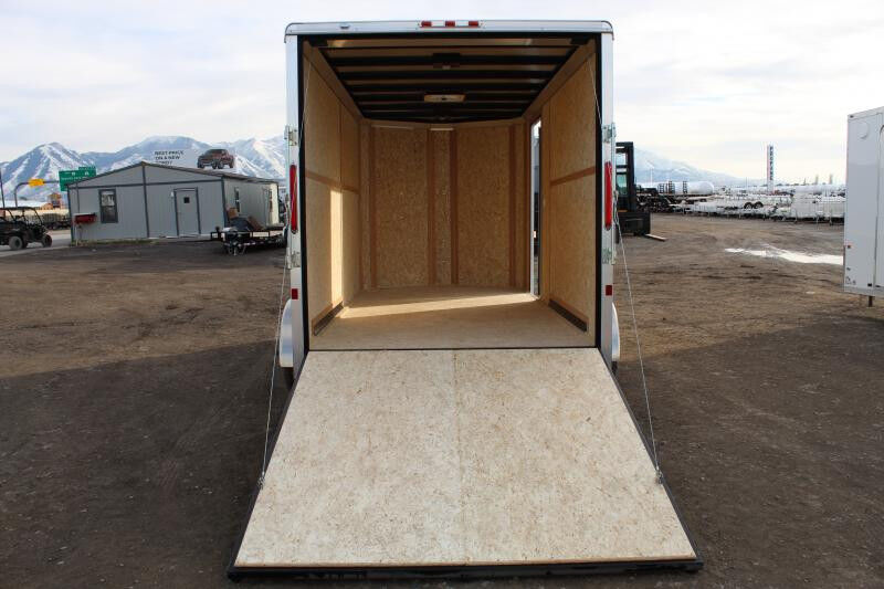 Stock #: CA2202 Trailer Specs: Color: White .030 Aluminum Overall: Length: 18'9" Width: 8'5" Height: 8'9" Interior/Bed: Length: 14' Box + V-Nose Width: 6'8" Height: 7' Door/Ramp: Rear Spring Assist Ramp Door (Width: 74" x Height: 80") Weight: 2,225 lbs. | GVWR: 9,990 lbs. | Payload: 7,765 lbs. Axle(s): 5,200 lb. Dexter Spring Braked Axle w/ EZ Lube Hubs Tire/Wheel: ST225/75R15 | Load Range D Coupler: Type: Bumper Pull | Size 2 5/16" | 7-Way 12V Connector 16" OC Vertical Posts | 16" OC Crossmembers | 24" OC Tube Roof Bows 3 Year Limited Warranty Trailer Includes Following Options: 14x14 Manual Roof Vent Rv & Bar Lock On Man Door Standard Features: Tube Steel Chassis Fully Painted Frame 1"x1" Tube Steel Walls 1.5"x1.5" Tube Steel Roof One Piece Aluminum Roof Aluminum Capped Rear Corner Posts Tongue and Bumper Coated w/ Rugged Bedliner 24" Front Stoneguard Radius RV Man Door (36" x 78") 3/4" Paktite Flooring 3/8" Paktite Sidewalls (4) Medium Duty Tie Downs LED Interior Dome Light w/ Wall Switch Full LED Light Package w/ Encased Wiring Common Addons: Wall Mounted Spare Tire 10 ft. E-Track Stick Recessed 2,500# D-Ring Additional Colors Available Call for Availability WASATCH TRAILER SALES - LARGEST TRAILER SELECTION IN UTAH Springville: (801) 528-1581 | 1180 S 2000 W, Springville UT, 84663 View More Inventory: www.wasatchtrailer.com
