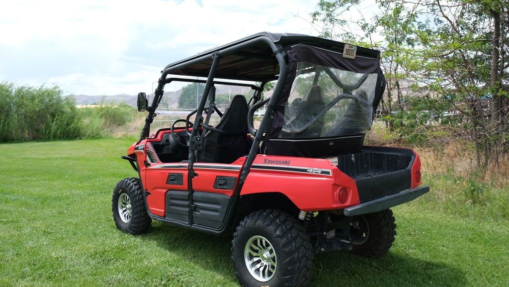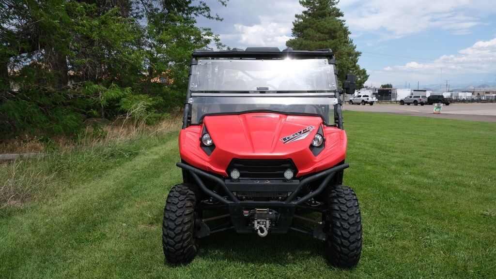 STOCK NUMBER: 3923 2013 Kawasaki Teryx® 4 750 FI 4x4 LEThe Kawasaki Teryx® 750 FI 4x4 LE packages the best off-road features into one stylish and durable side x side. This deluxe Teryx™ includes a cab roof to help shield occupants from the sun, a deflector windshield to help divert mud, rocks and other trail debris that might splash over the hood, a retractable dual cup holder, and a high quality, automotive-style paint finish that is more scratch resistant than an average side x side’s plastic body panels.