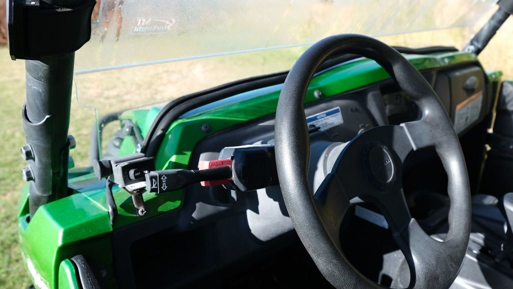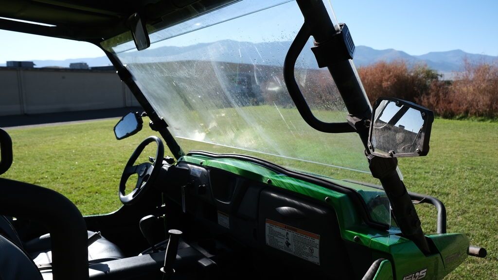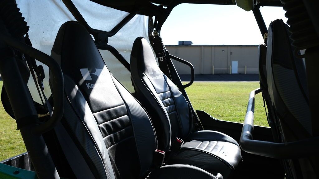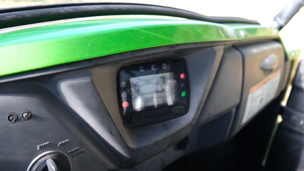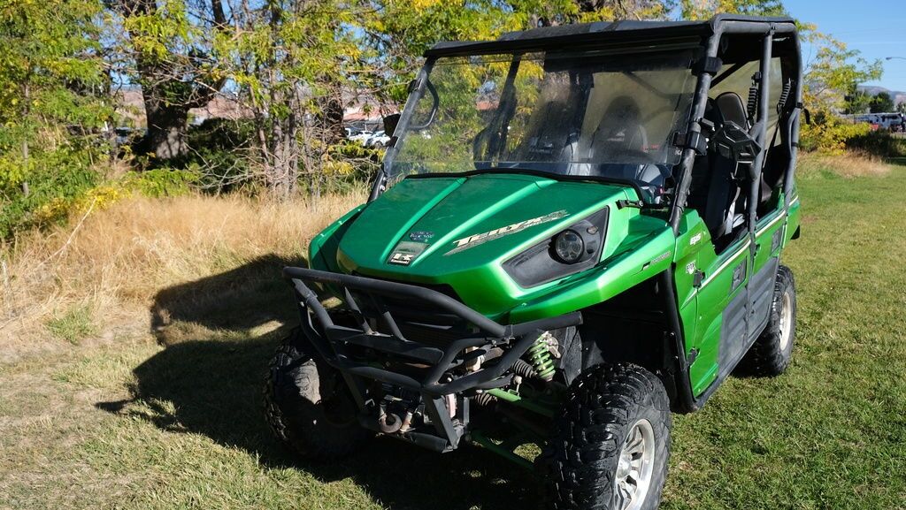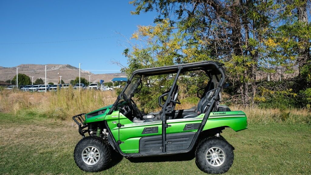 STOCK NUMBER: 4373 MILEAGE: 6013 2014 Kawasaki Teryx4™ LEThe new more powerful Kawasaki Teryx4™ LE is the pinnacle of Side x Side performance and styling. Packing all of the latest Teryx4™ upgrades like a larger and significantly more powerful 800 class V-twin, and all-new Fox Podium shocks that help it set new standards in performance, reliability and durability, the LE model adds extra style and comfort with custom touches that give this tough Side x Side a trail presence that’s unmatched by any other unit!NEW Larger 783cc digital fuel-injected 90-degree V-twin offers more power than ever, delivered exactly where a four-seat Side x Side needs it most. Even better... it does it all while delivering better fuel economy!NEW Fox Podium shocks offer excellent sporty handling coupled with plush ride comfortNEW LED headlamps provide higher intensity lighting for driving in low visibility conditionsKawasaki engineering and construction that is visibly strong, with high-quality welds, large bearings, stout U-joints and a premium look that can only be found on Teryx® side x sidesKawasaki engineering and construction that is visibly strong, with high-quality welds and a premium look that can only be found on Teryx® side x sidesElectric Power Steering (EPS) system offers low-effort steering and extra damping at speed and in rough goingNEW Painted candy-colored Lime Green or Burnt Orange bodywork package offers good looks and extreme durability for the long haul, with scratch-resistant material used throughoutNEW 3-tone high-backed bucket seat covers offer comfort to match their custom looksThe LE model also includes a stylish and functional cab roof/sun top that helps shield the driver and passengers from sun and rain, for enhanced comfort while exploring the great outdoorsRoomy interior lets the driver and three passengers stretch out, while ample cargo space means you can take along plenty of supplies and gearRelatively short wheelbase allows a tight 16.7’ turning radius (handy for close-quarters maneuvering) and the ability to climb over obstacles that would ground longer and lower vehiclesSuperb off-road ability, including high-grade Maxxis Bighorn 26” tires on 12” rims, 10.8” of ground clearance, a 17-degree break-over angle, and 23.6” water fording depthContinuously variable transmission (CVT) and a centrifugal clutch offer sporty performance and the slow-speed throttle precision needed in tricky or slow-speed conditionsElectronic three-mode transfer case is controlled by a handy cockpit switch and allows instantaneous changes from 2WD to 4WD and 4WD with differential lock for maximum traction situationsDual 200mm front discs and a sealed multi-plate rear brake system help provide stopping powerConvenience features include latching doors, auto-style parking brake, roomy cargo area, full instrumentation, passenger hand-holds, over fenders for mud protection, easy-opening front hood for maintenance and much moreMulti-function instrumentation offers the driver a host of important information, including speed, hour meter, fuel level and much more