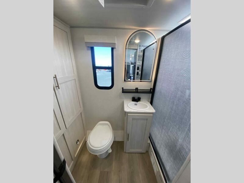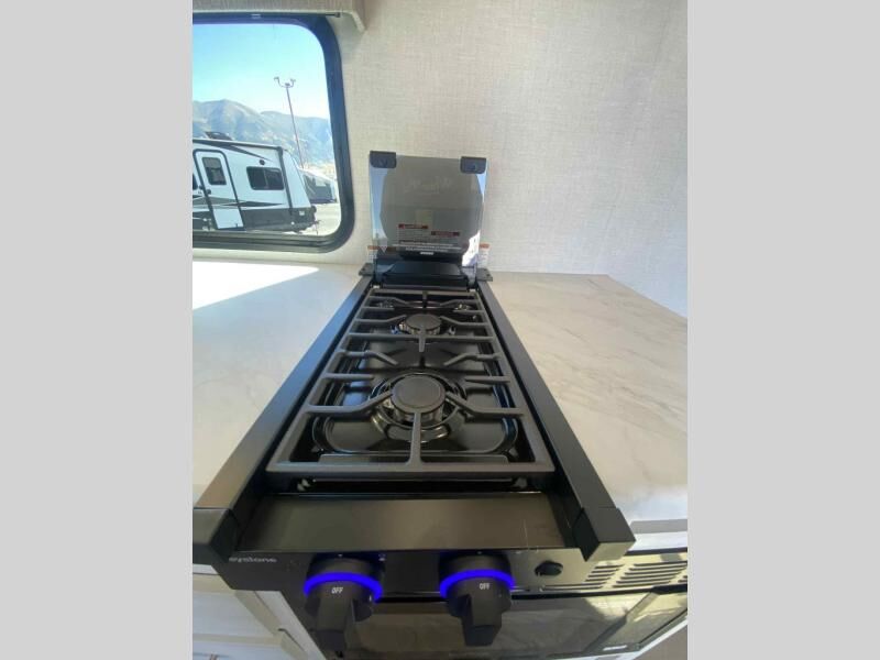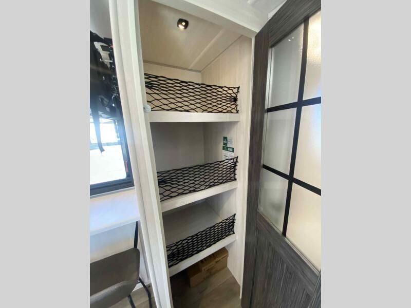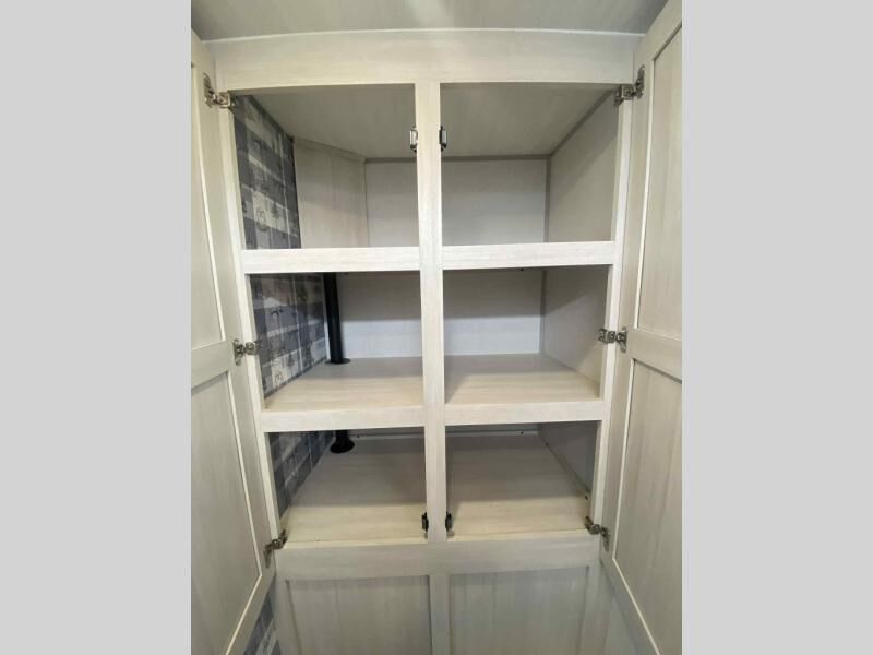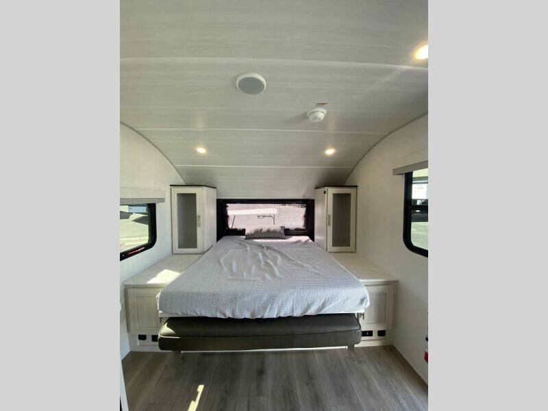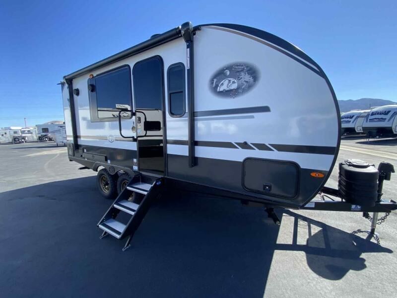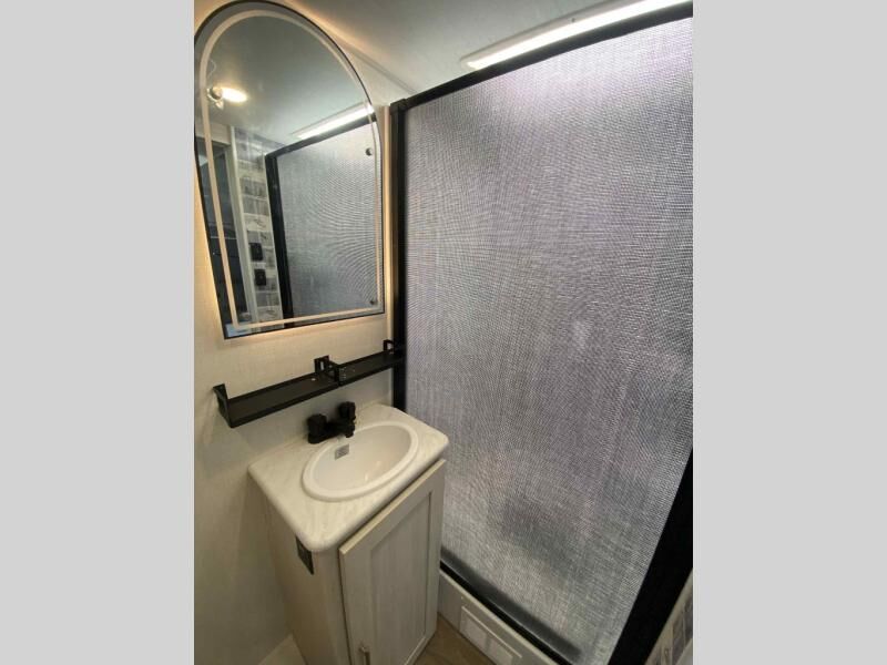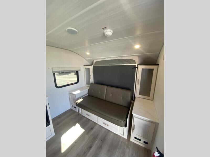 This versatile travel trailer is perfect for two adventure-seeking campers! You will love having a queen-size Murphy bed up front since you can fold it away during the day and relax on the sofa. There are also dual wardrobes to keep your clothes out of the way plus dual end end tables to set your coffee or book on. A full kitchen includes a convection microwave, 12V black glass refrigerator, and a counter with two chairs where you can dine each day. You will also love the flip-up window above the table, along with a 12V TV to keep you entertained, plus a pantry to keep food stocked. Head to the full rear bath that includes a large linen closet, a shower, and a night light for added convenience. The exterior is just as accommodating with its large roof mounted solar panel, rear accessory hitch**,** slam latch cargo doors, and more. This model also includes the Hood River Edition that comes with Mud Legend all terrain tires with TPMS, a MaxxAir vent cover, and 12V tank heaters!