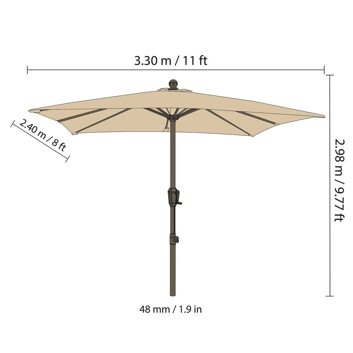 Seasons Sentry 8' x 11' Height Adjustable Market Umbrella