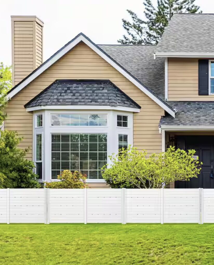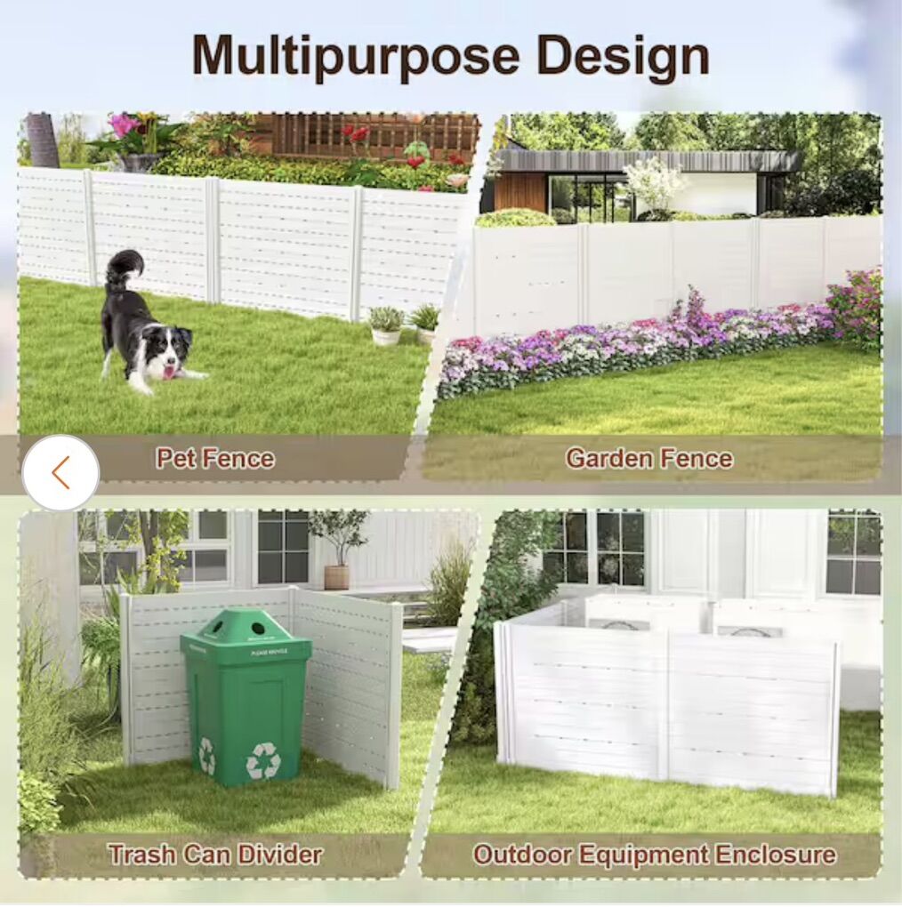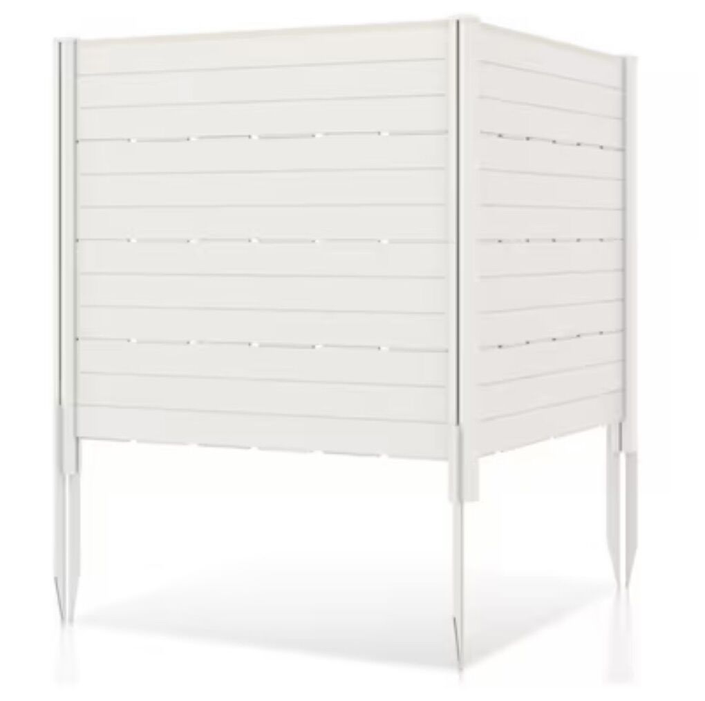 White Plastic Outdoor Privacy Screen. Perfect for concealing AC units, trash cans, or creating a stylish garden fence.