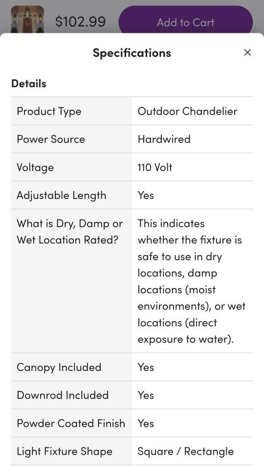 CashAppGot this on wayfair, but its too small for where I want it. Couldn't return it because of shipping. got it for over $100, asking $40 all measurements should be listed. new, still in the box, never put it on