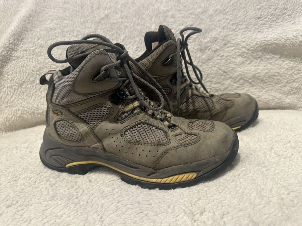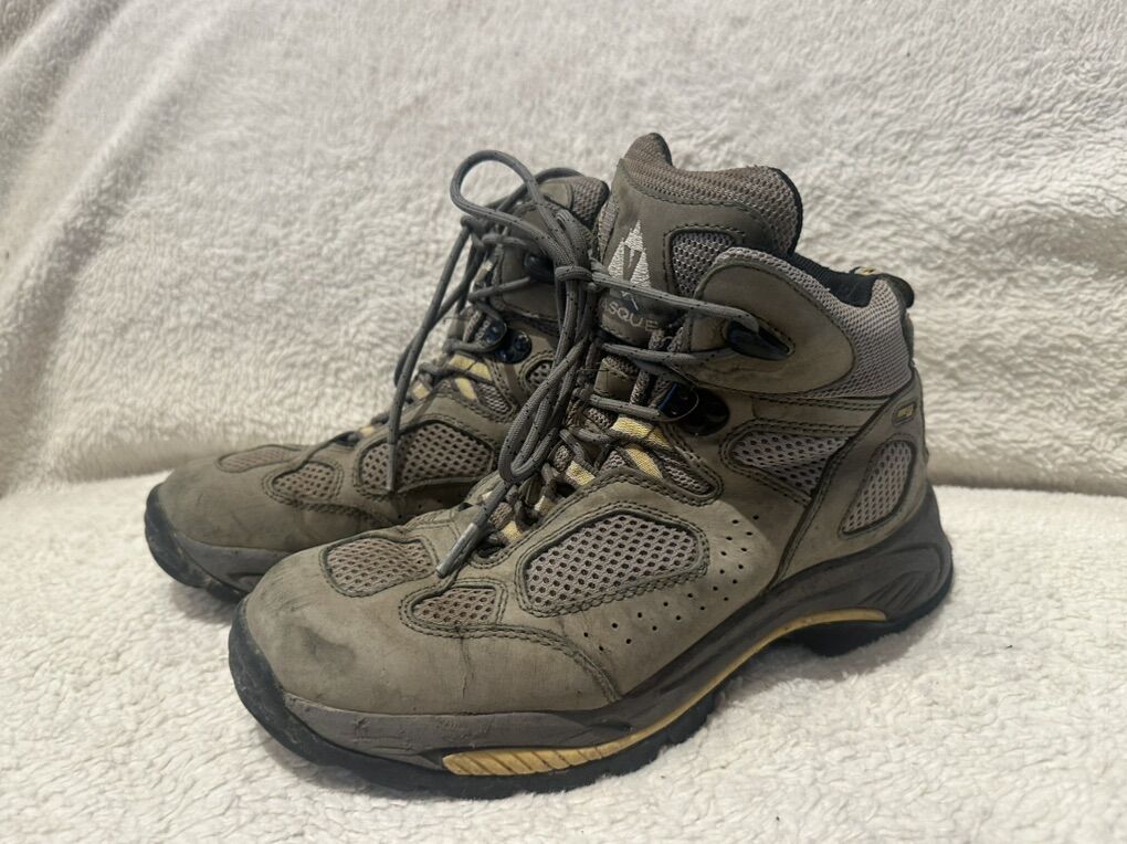 Vasque women’s size 9 gray mesh and leather Gore-Tex mid hiking boots. These are in good condition, see photos for details. They do have some wear to the soles. I take cash or Venmo, but cash is preferred. Text is best. 801-201-4446. Check out my other ads for additional sizes and styles.