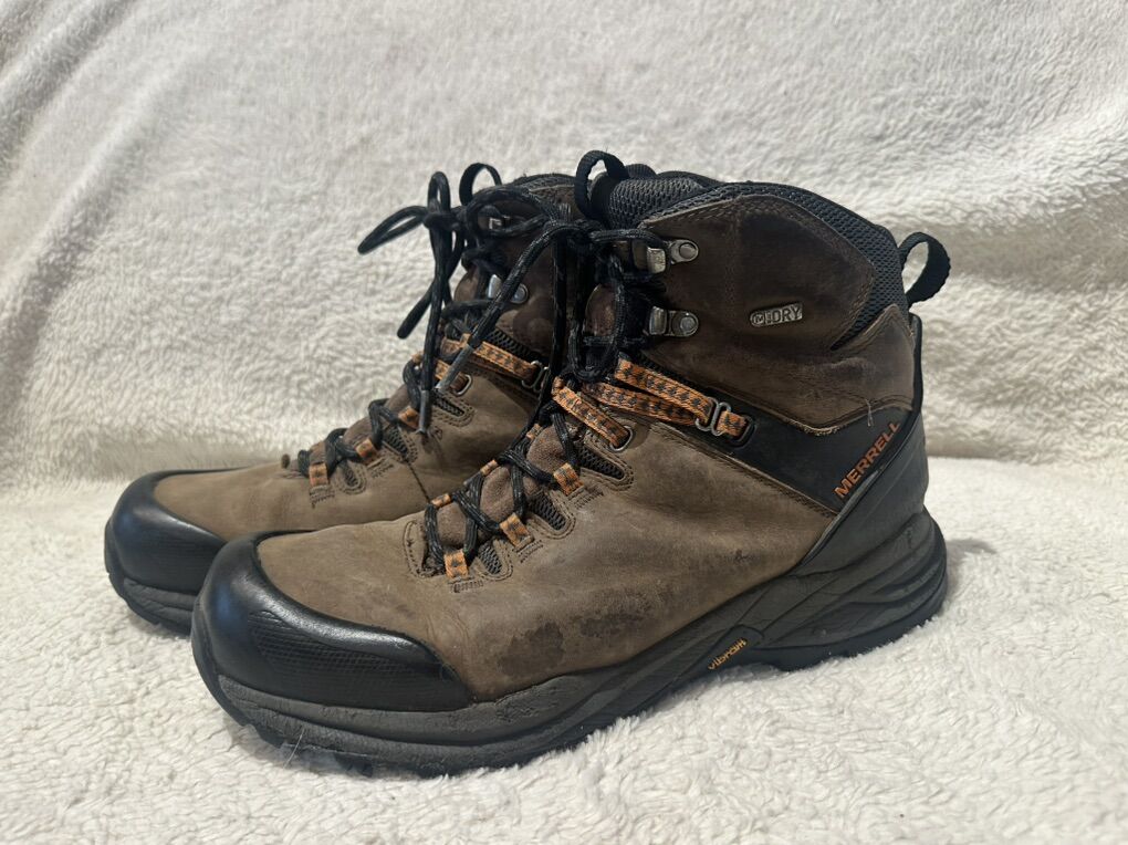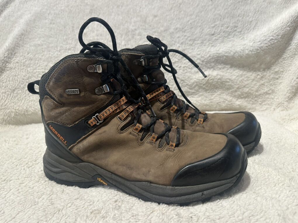 Merrell men’s size 10.5 brown leather waterproof mid hiking boots. These are in good condition, a few smudges on the Leather. See photos for detail details. I take cash or Venmo, but cash is preferred. Text is best. 801-201-4446. Check out my other ads for additional sizes and styles.