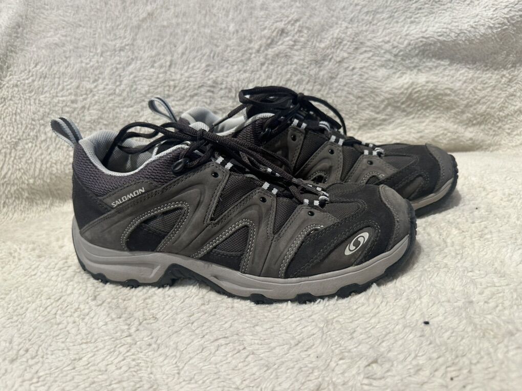 Salomon men’s size 10, dark gray leather and mesh hiking shoes in excellent condition. See photos for detail details. I take cash or Venmo, but cash is preferred. Text is best. 801-201-4446. Check out my other ads for additional sizes and styles.