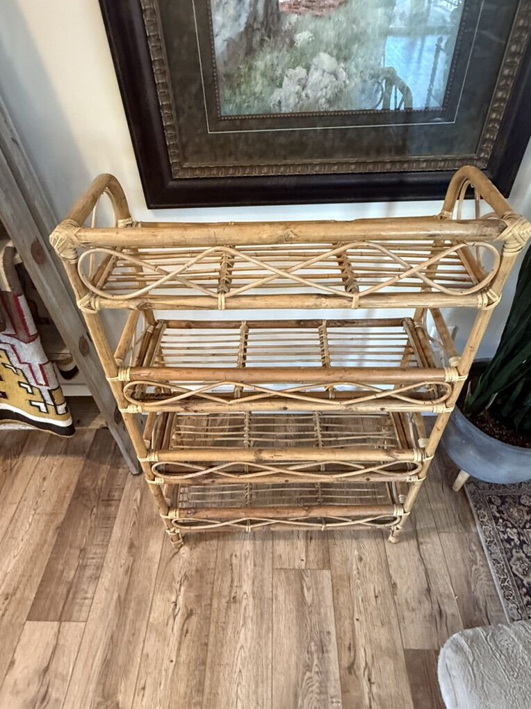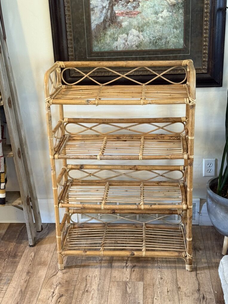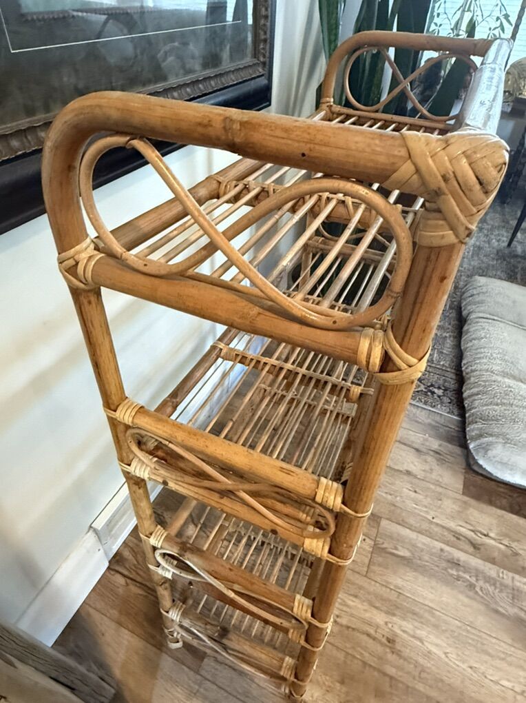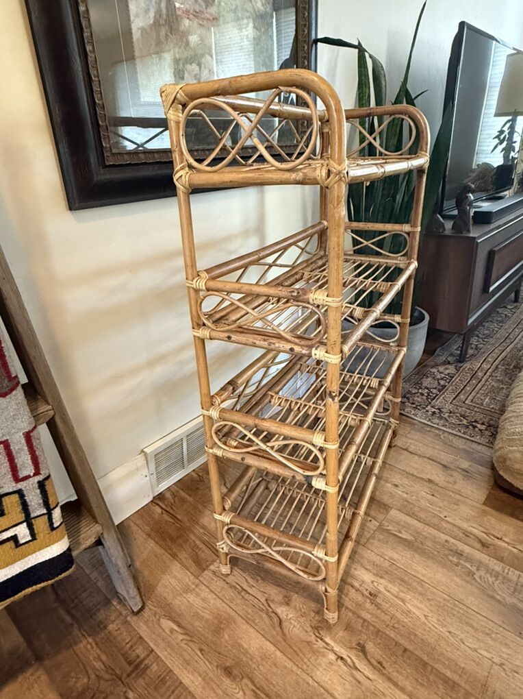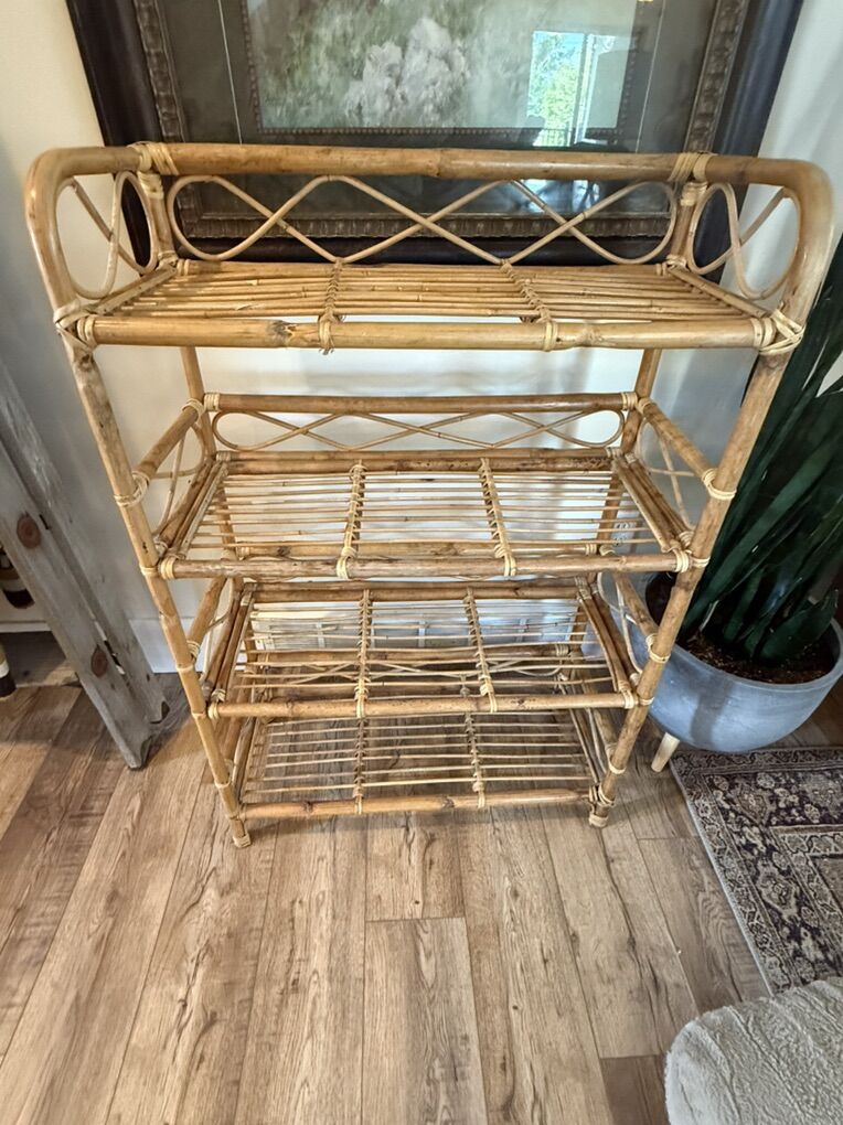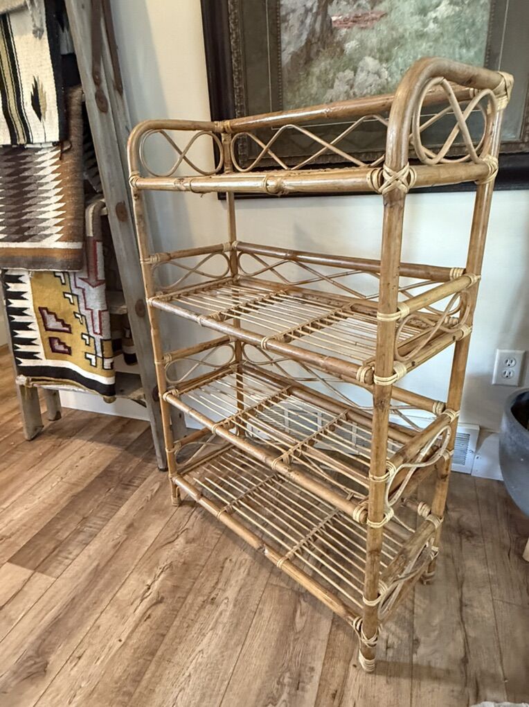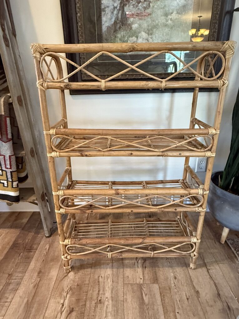VenmoBeautiful vintage rattan shelf . 4 shelves, incredible lines and fantastic function