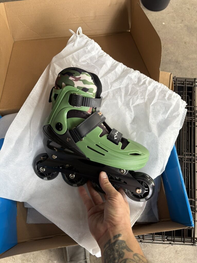 VenmoBrand new rollerblade never used got them for my kids. They didn’t want these ones. They wanted the ones with the four wheels side-by-side instead of stacked like this my loss your gain they retail for $60 willing to let them go for 45 OBO.
