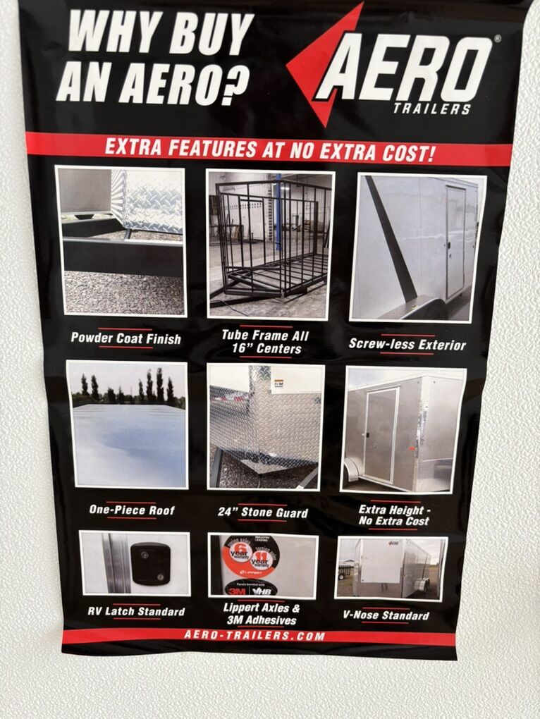 Advantages of aero trailers are improved fuel efficiency, leading to cost savings, and enhanced stability and handling, which results in a safer and smoother towing experience. By reducing air resistance and drag through features like rounded corners, V-noses, and streamlined body shapes, aero trailers cut through the air more easily, leading to better gas mileage and less buffeting from wind. Rivetless exterior for a clean look and less maintenabce in the long run.