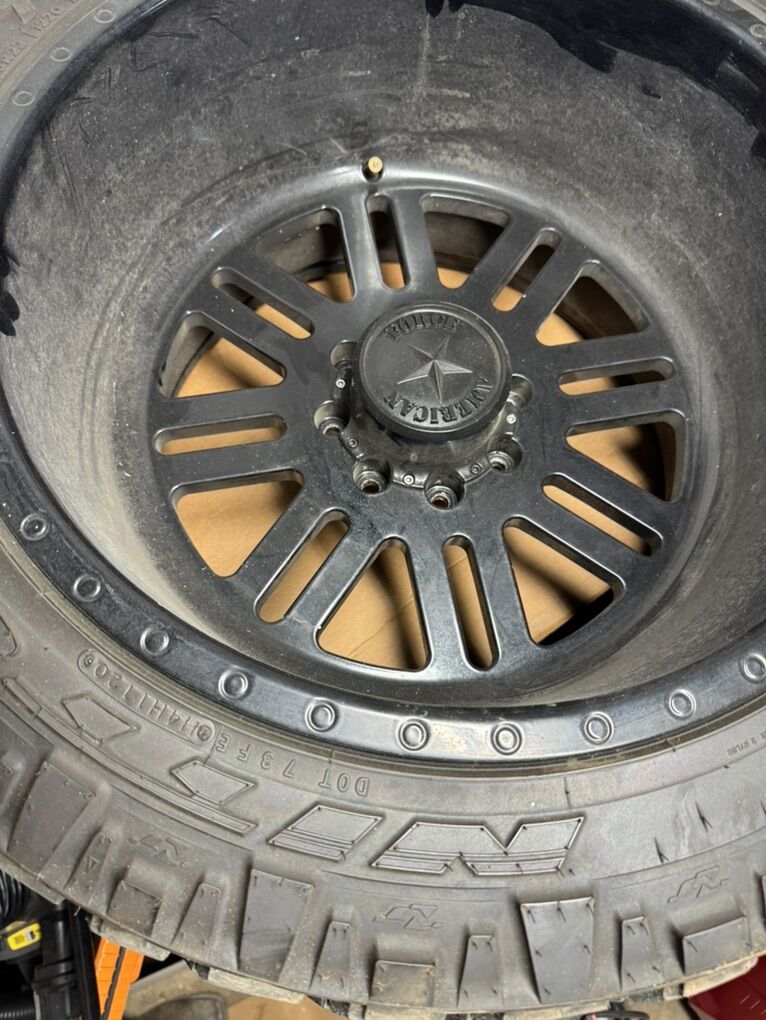 American force 22x14 -73 8x6.5. With 35x12.5 r22 nitro ridge grappler mud tires has at least 3/4 of the tread left they are only 2 years old I believe. They are just dirty from sitting in my garage they haven’t been curb checked. I had them on my fifth gen ram but will fit on any 8x6.5 lug pattern. I am looking to sale or trade for 22x12 black or gold rims. Or trade for a single cab Cummins or small truck must be 4x4 or car hauler trailer open to other trades. Let me know least I can say is no. I will add 5k cash max on top for the right truck 385-408-6052