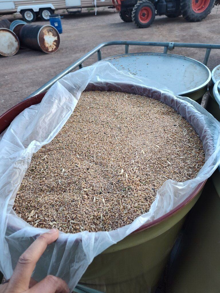 50 gal Barrel of seed for feed. Mostly wheat but some oats and barley. All organic ancient grain. I got a bunch for my chickens. 50 gal barrel. Just over 350 lbs per barrel.