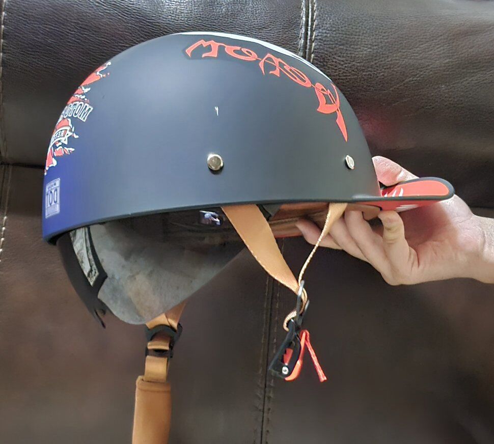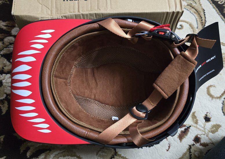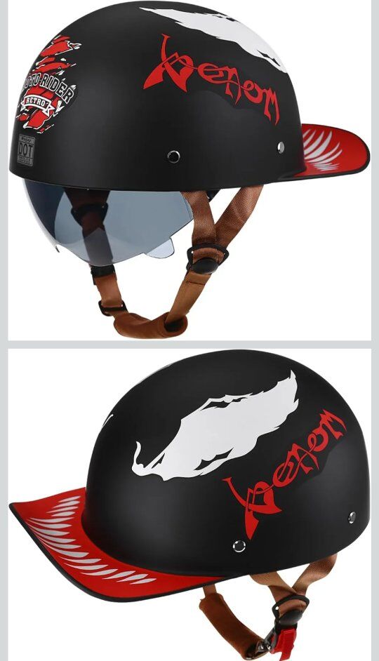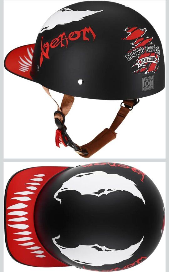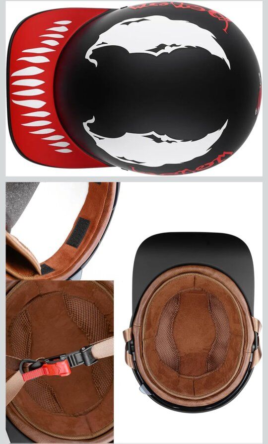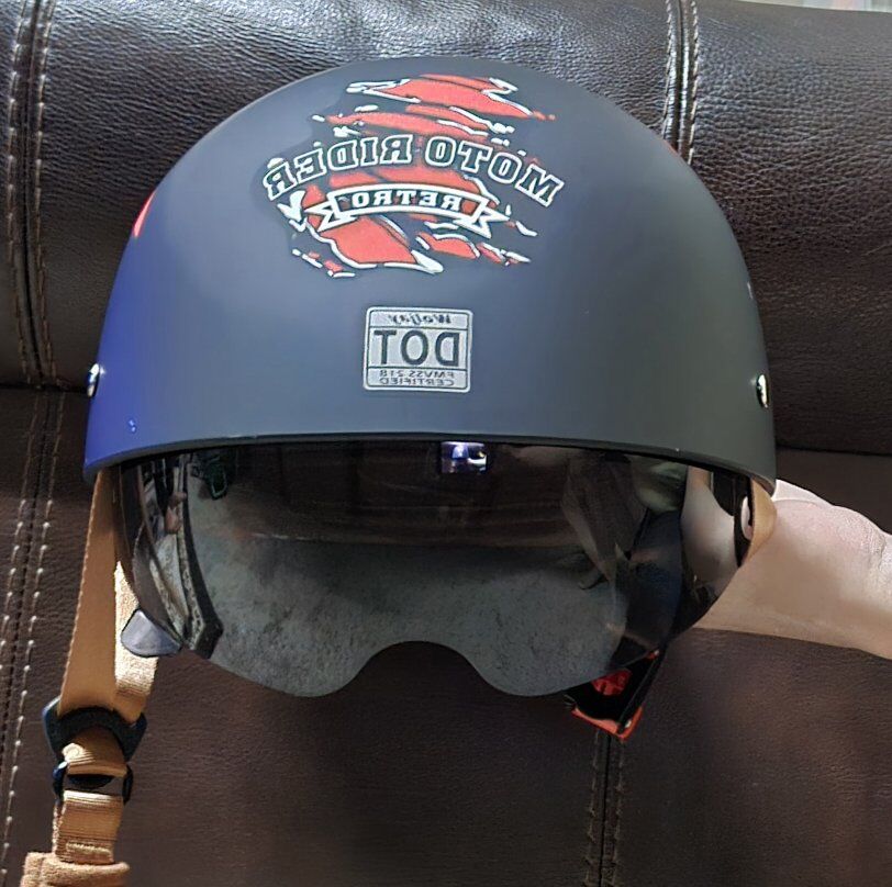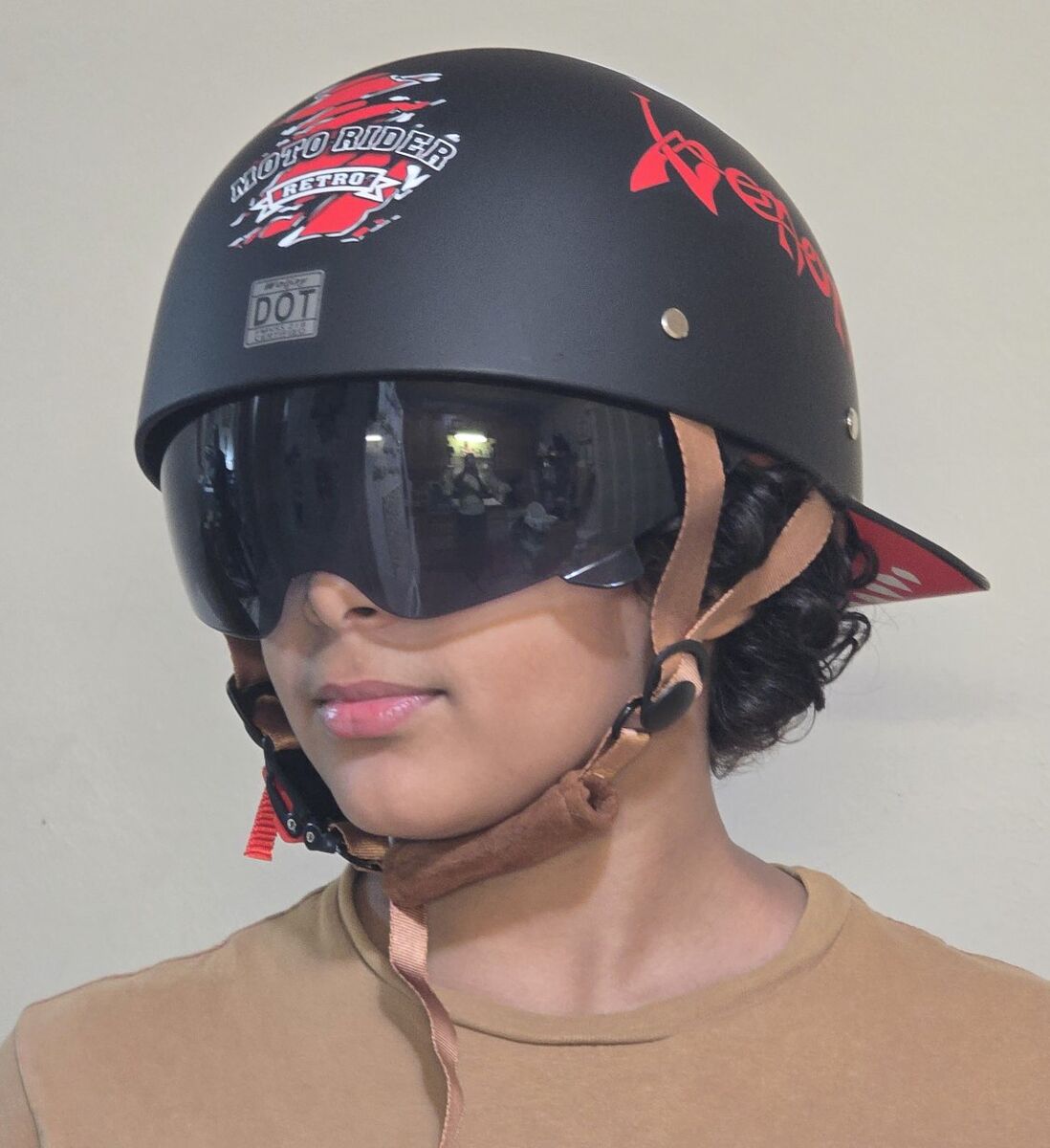 Vintage Retro Open Face Motorcycle Helmet Baseball Cap Half Helmets with pull-down Lens for Men Women Moped Cap Jet Scooter Street Cruiser - DOT Certified (Moto Rider, XXL) New for adult. Cash only please
